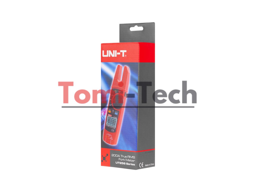 Merač UT256B má malý ergonomický a ľahko použiteľný dizajn, ktorý sa ľahko používa v stiesnených priestoroch. Priemer otvoru 14,7 mm umožňuje prácu s drôtmi rôznych veľkostí. LCD displej sa rozsvieti pri zhoršených svetelných podmienkach a automaticky sa zapne po 15 minútach bez akéhokoľvek zvýšenia energie. UT256B je vybavený dvoma 1,5V (R03) batériami a je vybavený testovacími káblami a úložným priestorom pripraveným na použitie.