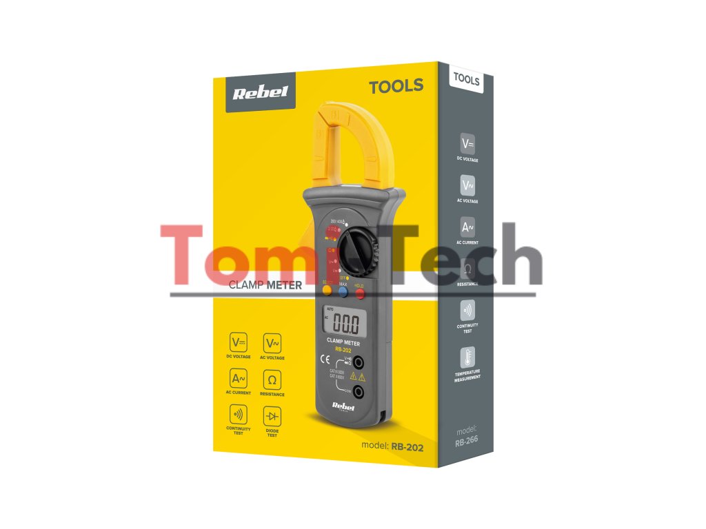 Kliešťový merač REBEL RB-202 je všestranný prístroj určený na presné elektrické merania, ktorý kombinuje funkcie merania prúdu pomocou multimetra. Vďaka svojej robustnej konštrukcii a širokým možnostiam merania je ideálnym nástrojom pre profesionálov aj kutilov.