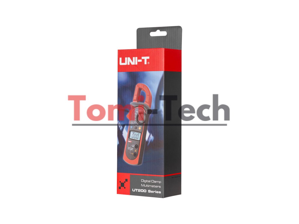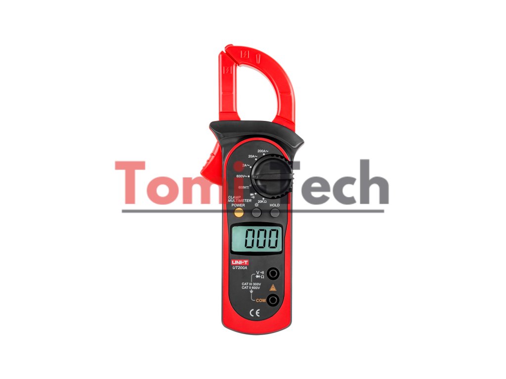 UT200A sa vyznačuje ergonomickým dizajnom s rozmermi 208 x 76 x 30 mm a hmotnosťou 260 g, vďaka čomu sa pohodlne prenáša a ľahko sa používa. Merací prístroj má rozostup čeľustí 28 mm, čo umožňuje meranie prúdu vo väčších vodičoch. Prístroj je napájaný 9 V batériou (6F22), čo zaisťuje dlhú prevádzku bez nutnosti častej výmeny batérií. Merací prístroj sa dodáva s batériami, testovacími káblami a puzdrom pre bezpečné skladovanie a prepravu.