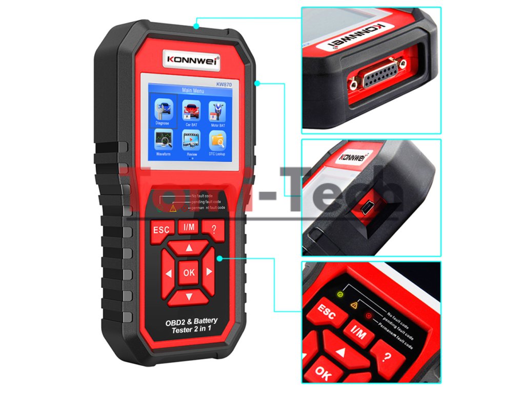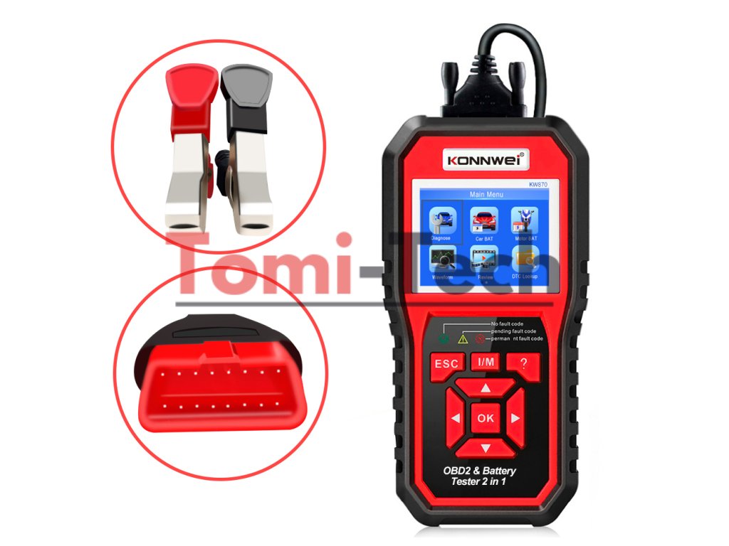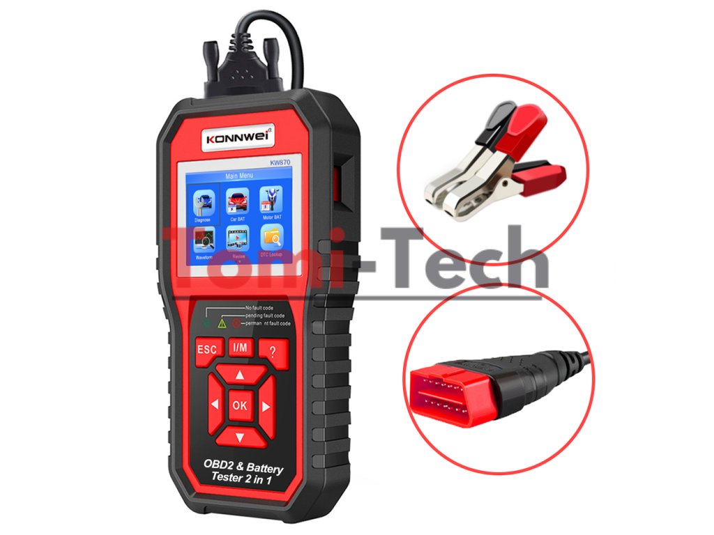 Diagnostický merač, OBD2 skener, tester batérií Konnwei KW870