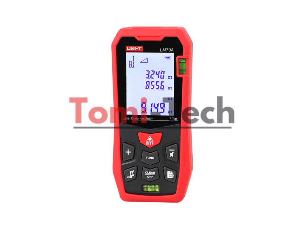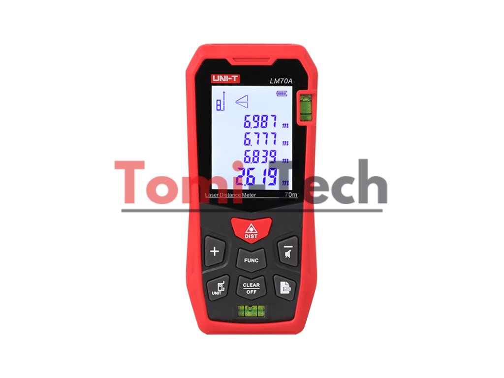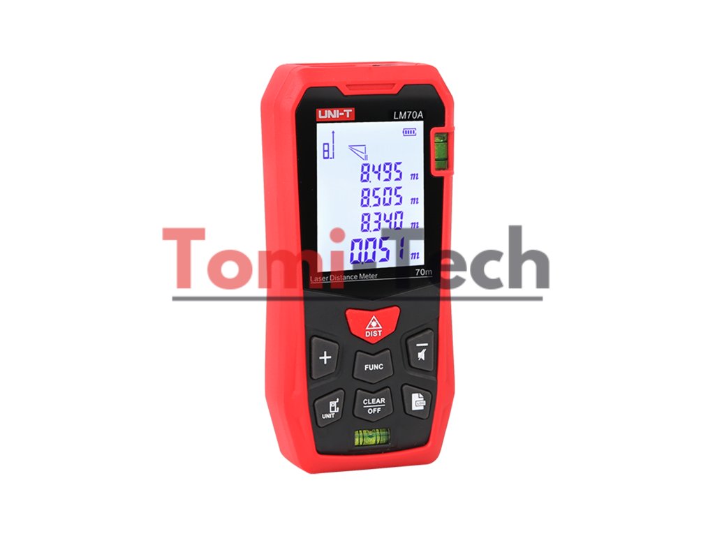 UNI-T LM70A je vybavený množstvom funkcií, ktoré uľahčujú každodennú prácu. Okrem štandardného jednorazového a kontinuálneho merania ponúka merač možnosť merať plochu, objem, ako aj priame a nepriame merania pomocou Pytagorovej vety. Funkcie sčítavania a odčítavania výsledkov a možnosť uložiť až 99 skupín meraní robia zariadenie mimoriadne funkčným a pohodlným na používanie.