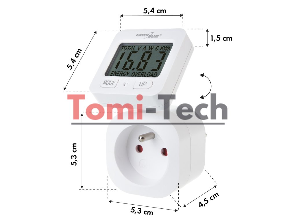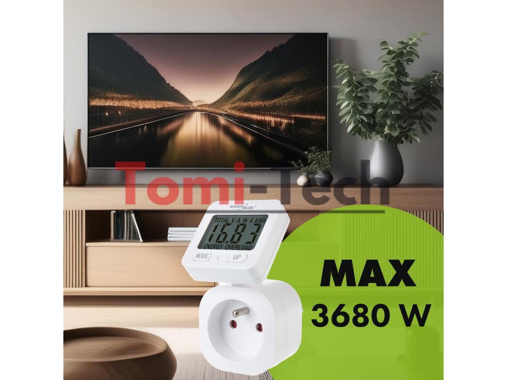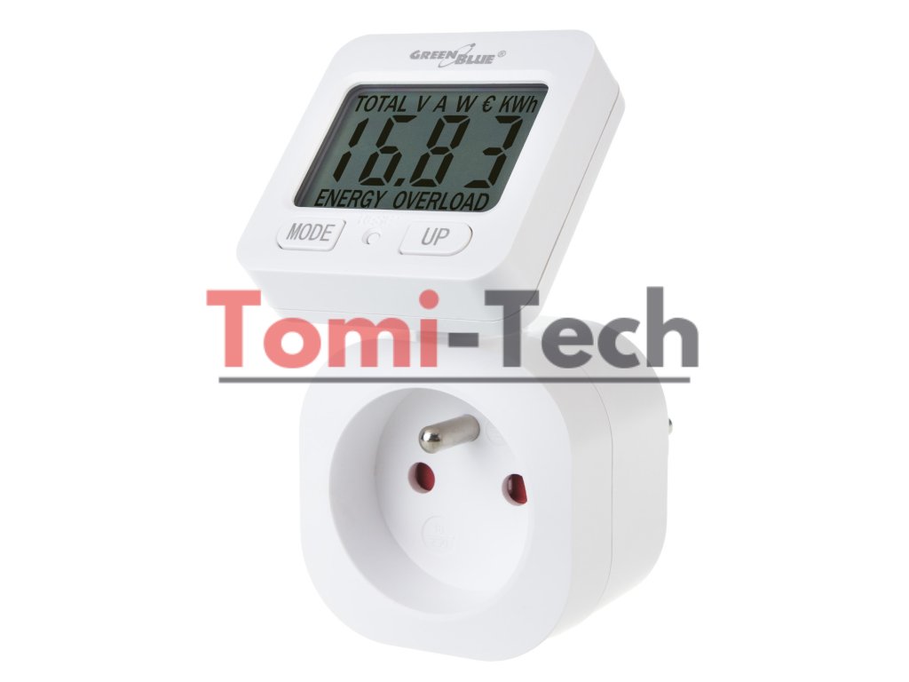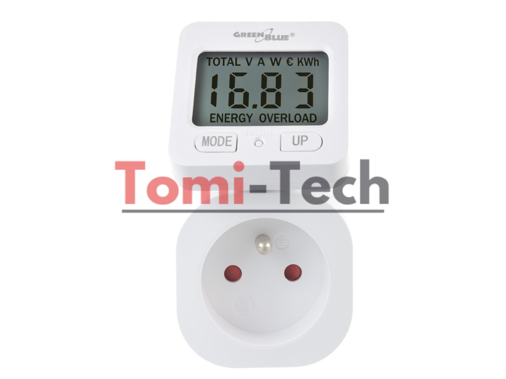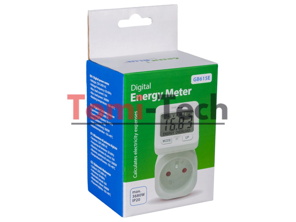 Merač energie GreenBlue, wattmeter, 16 A, max. 3680 W, zálohovanie pamäte, GB615 E
