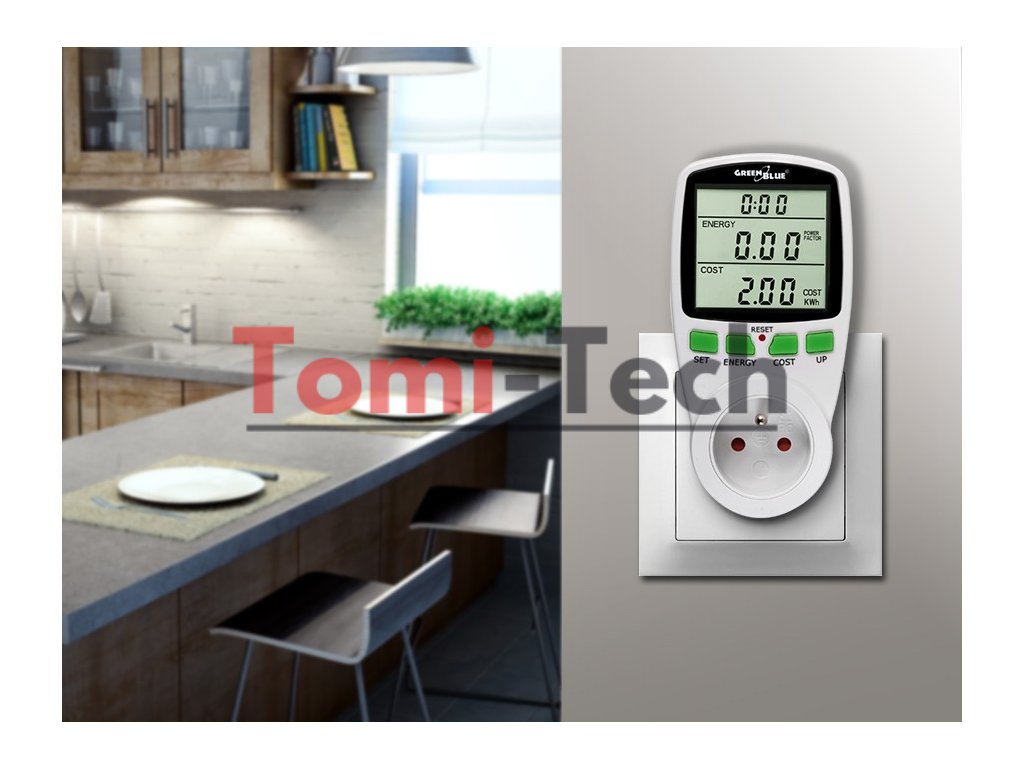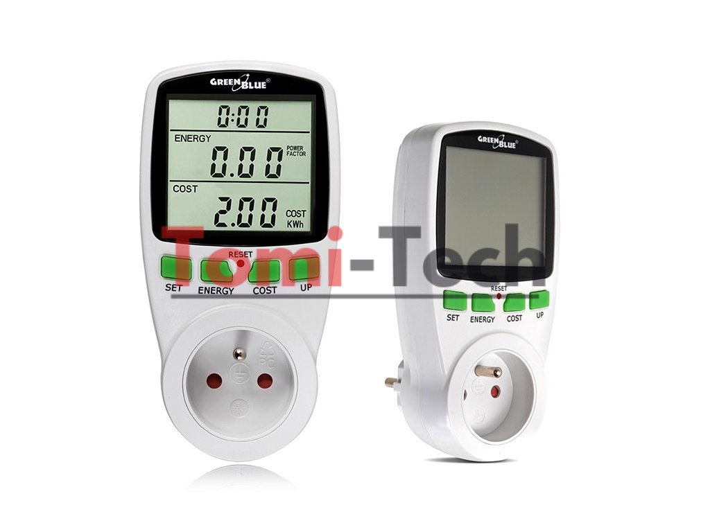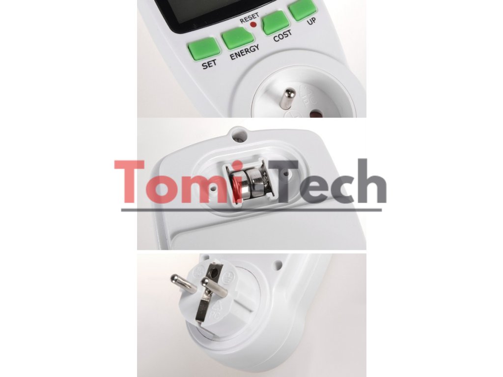 - Zobrazuje a ukladá celkový čas zapnutia a poplatky za energiu (po definovaní sadzby) - - zobrazuje frekvenciu elektrickej siete, výkon faktor