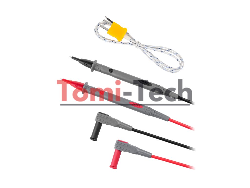 Merací prístroj Uni-T UT802 sa vyznačuje robustnou konštrukciou a kompaktnými rozmermi 300 x 245 x 105 mm, čo zaisťuje jeho odolnosť a mobilitu. Je napájaný zo siete 220 V AC aj z dvoch batérií R14 1,5 V DC. Súprava obsahuje všetko potrebné príslušenstvo: testovacie káble, krátke káble s krokosvorkami, napájací kábel, teplotnú sondu a merací adaptér, čo vám umožní okamžite začať pracovať.