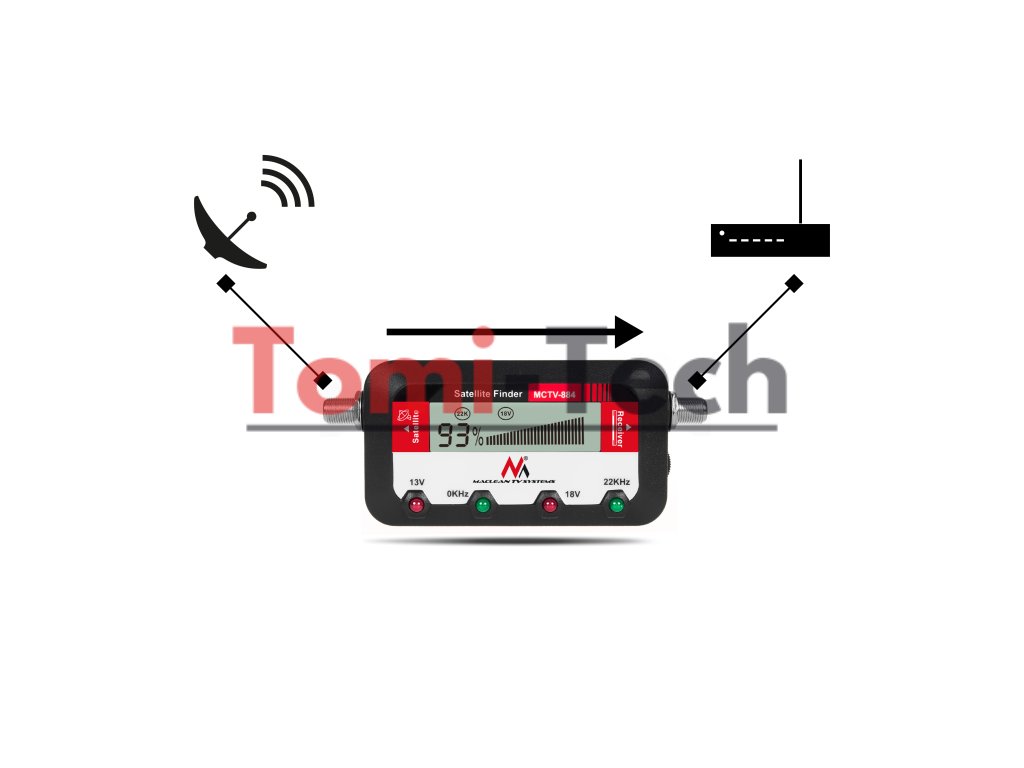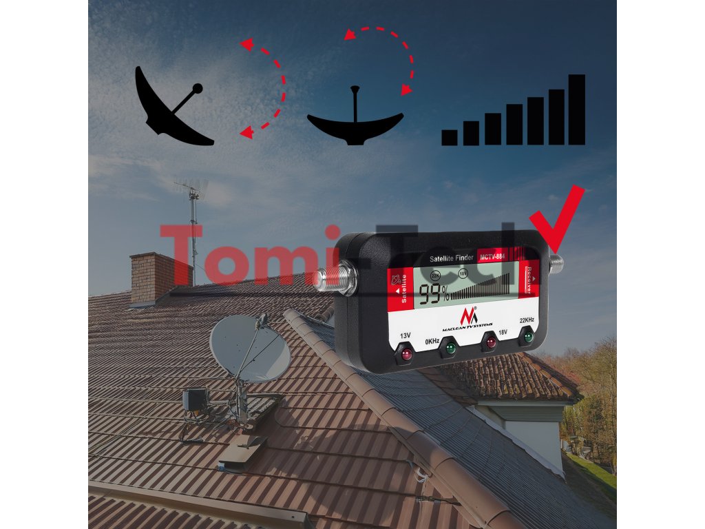 Digitálny merač Sat-Finder je riadený mikroprocesorom, čo zaisťuje spoľahlivé a vysoko presné výsledky. Sila signálu sa zobrazuje graficky na LCD displeji a číselne na stupnici od 0 do 99 %. Sila signálu môže byť indikovaná aj tónom z reproduktora (čím vyšší tón, tým lepšia sila signálu). Merač je vysoko citlivý a dokáže detekovať aj tie najslabšie signály.