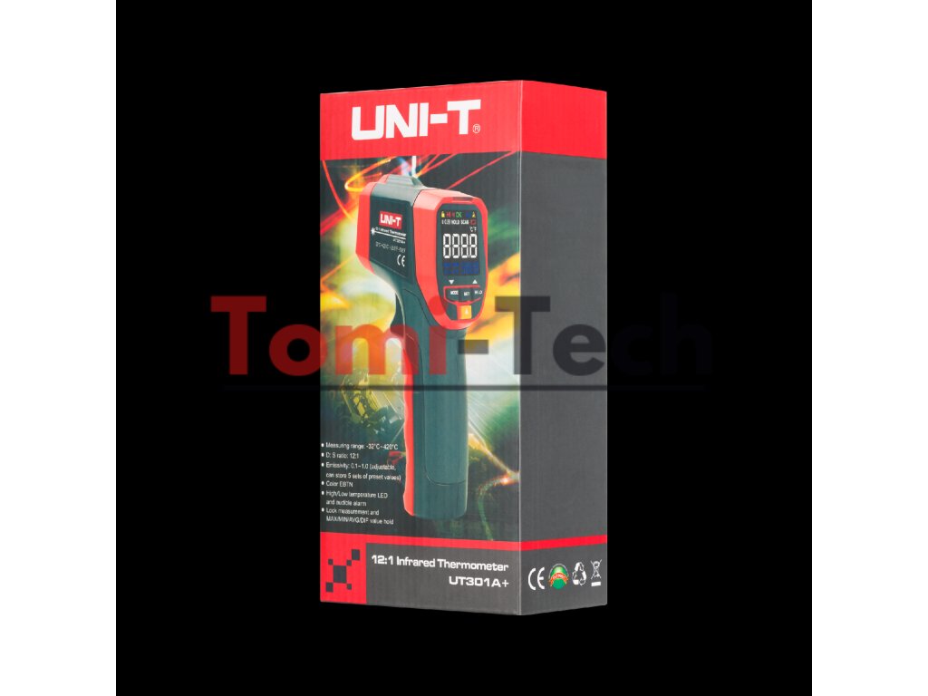 Teplomer UT301A+ je presný nástroj na bezkontaktné meranie teploty, ideálny pre priemyselné, servisné a laboratórne aplikácie. Vďaka pokročilým funkciám a vysokej presnosti je toto zariadenie nenahraditeľné všade tam, kde je potrebná rýchla a presná regulácia teploty.