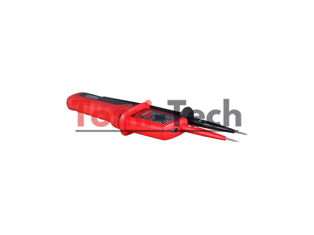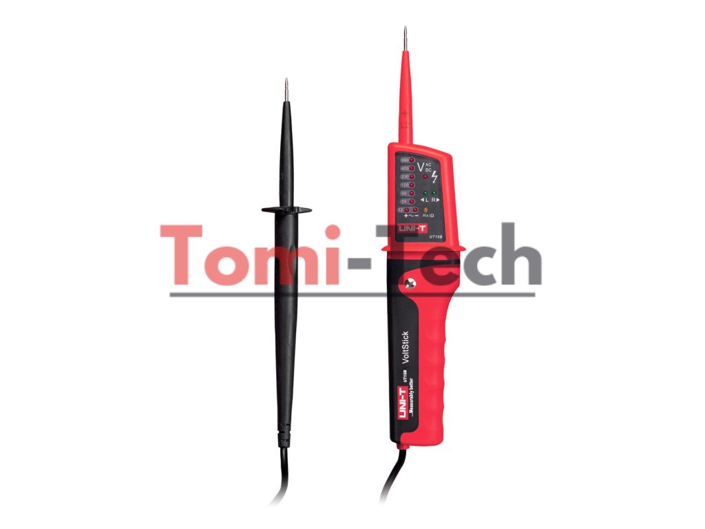 UT15B ponúka meranie striedavého/jednosmerného napätia Meranie v širokom rozsahu od 12 V do 690 V s vizuálnym LED indikátorom, ktorý umožňuje rýchle rozpoznanie hodnôt napätia. Zariadenie tiež umožňuje testovanie fázovej postupnosti, čo je nevyhnutné pri práci s trojfázovými inštaláciami, v rozsahu napätia od 100 V do 690 V a frekvencie od 50 Hz do 60 Hz. Tester tiež detekuje jednofázové napätie a kontroluje kontinuitu obvodu, čo umožňuje efektívnu diagnostiku a údržbu inštalácie. Funkcia detekcie polarity (kladnej a zápornej) navyše umožňuje rýchle a bezpečné testovanie obvodu.