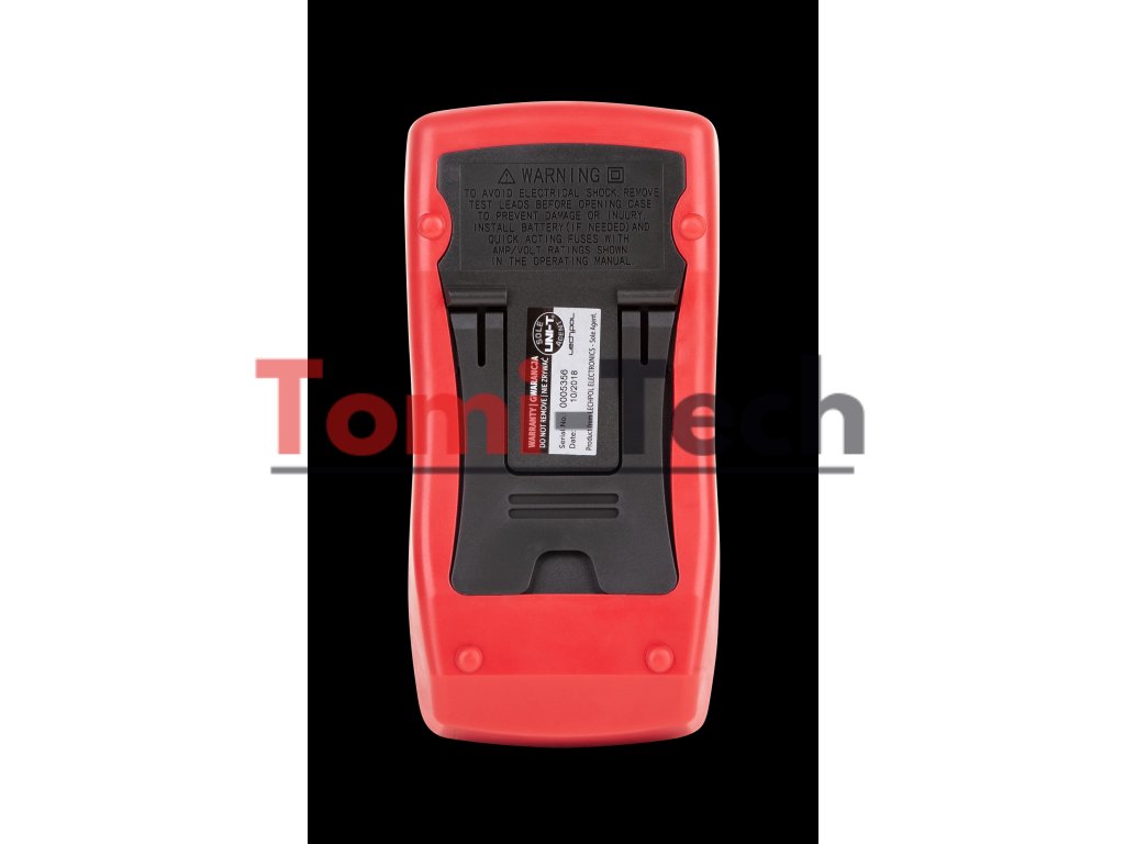 Merač UT58A sa vyznačuje odolnou konštrukciou a ergonomickým dizajnom, vďaka čomu je pohodlný na používanie a odolný voči poškodeniu. Veľký displej s rozmermi 60 x 54 mm poskytuje jasné údaje, zatiaľ čo jeho hmotnosť 350 g a rozmery 179 x 88 x 39 mm z neho robia praktický nástroj, ktorý sa ľahko prenáša a používa v rôznych podmienkach. Zariadenie je napájané 9 V (6F22) batériou, čo zaisťuje dlhodobé používanie bez nutnosti častej výmeny batérie.