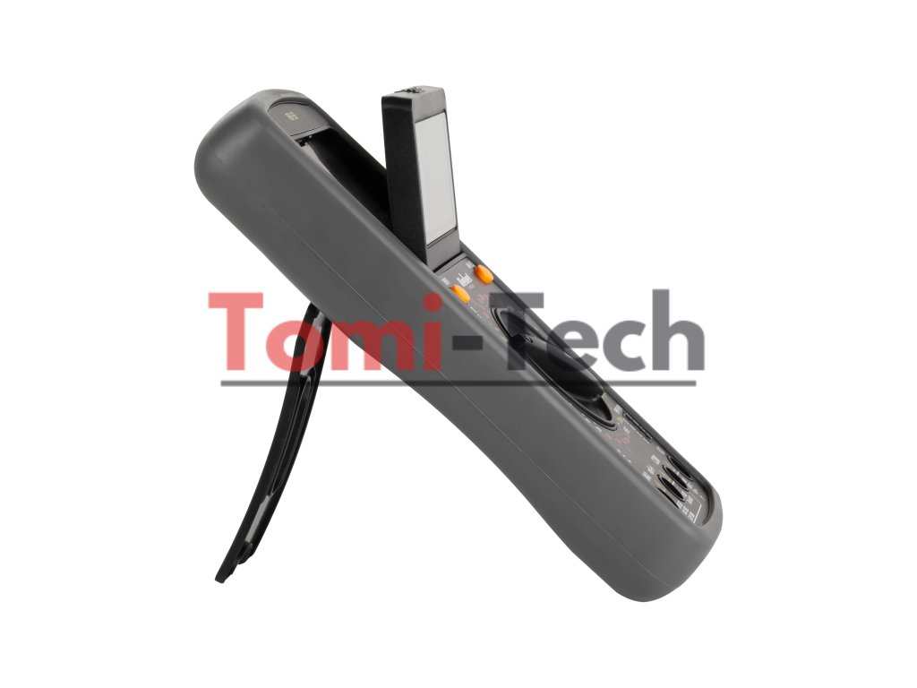 REBEL RB-55 sa vyznačuje kompaktnými rozmermi (190 x 90 x 31 mm) a s hmotnosťou 272 g, vďaka čomu je jeho používanie praktické a pohodlné. Skladací stojan umožňuje stabilné umiestnenie merača počas prevádzky a veľký displej s rozmermi 60 x 31 mm zaisťuje jasné údaje. Merač je napájaný štandardnou 9V batériou, ktorá zaručuje dlhú prevádzkovú dobu.