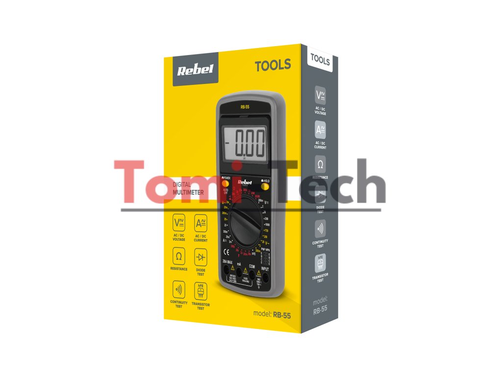 Multimeter REBEL RB-55 je presný merací nástroj, ktorý bude dobre fungovať v domácich aj profesionálnych aplikáciách. Vďaka širokej škále funkcií a meraní umožňuje presnú analýzu elektrických parametrov a diagnostiku zariadení.