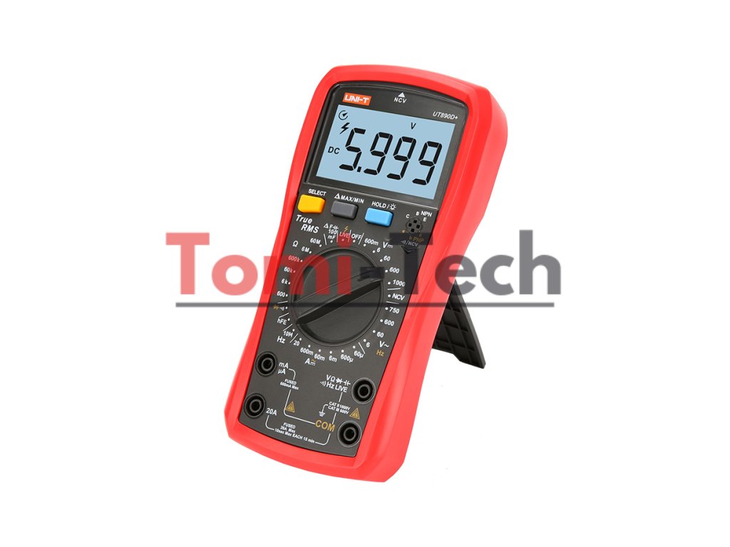 ----------- ROZSAHY MERANIA:-----------Jednosmerné napätie: 600 mV / 6 V / 60 V / 600 V / 1000 V ?(0,5%+2)AC Napätie: 6 V / 60 V / 600 V /Prúd: 3080 VDC / 7600 VA% 600 uA / 6 mA / 60 mA / 600 mA / 20 A ?(0,8%+8)AC Prúd: 60 uA / 600 uA / 6 mA / 60 mA / 600 mA / 20 A ? (1%Ohm /60m Odpor kOhm /600 kOhm /600 kOhm /600 kOhm 600 kOhm / 6 MOhm / 60 MOhm Ω(0,8%+3)Kapacita: 6 nF / 60 nF / 600 nF / 6 Ω / 60 Ω / 600 Ω / 6 mF / 60 mF / 100 mF Ω(3%+10)ACV Frekvencia: 10 Hz~10 kHz Ω(0,1%+5)Frekvencia: 9,999 Hz ~ 9,999 MHz (1%+5)Meranie hFE tranzistoraTest diódKontrola kontinuity ------------DOPLŇUJÚCE FUNKCIE:-----------NCV (funkcia detekcie elektrického poľa)Manuálna zmena rozsahuDetekcia vodičov pod napätímTrue RMSSignalizácia prepálenej poistkySignalizácia preťaženia: >= 20 A Režim REL: nulová hodnotaZmrazenie poslednej hodnotyPodsvietenie displejaZáznam maximálnej/minimálnej hodnotyZvukový a svetelný signál: počas merania kontinuity a NCVAutomatické vypnutieIndikátor slabej batérieMaximálna hodnota: 6000 VŠEOBECNÉ VLASTNOSTI: Napájanie: 2x 1,5V AAA batérie Veľkosť displeja: 56,5 x 36 mm Rozmery produktu: 183 x 88 x 56 mm Hmotnosť produktu: 346 g PREVÁDZKOVÉ PROSTREDIE: Prevádzková teplota: 0°C ~ 40°C (32°F ~ 104°F) Skladovacia teplota: -10°C ~ 50°C (14°F ~ 122°F) Relatívna vlhkosť: 0°C ~ 30°C =<75%, 30°C ~ 40°C =<50% Prevádzková nadmorská výška: 0~2000 mDodatočné parametre
