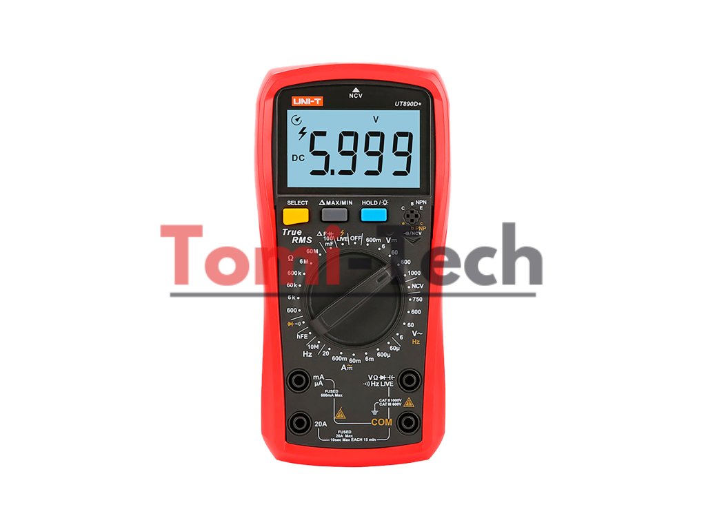 ----------- ROZSAHY MERANIA:-----------Jednosmerné napätie: 600 mV / 6 V / 60 V / 600 V / 1000 V ?(0,5%+2)AC Napätie: 6 V / 60 V / 600 V /Prúd: 3080 VDC / 7600 VA% 600 uA / 6 mA / 60 mA / 600 mA / 20 A ?(0,8%+8)AC Prúd: 60 uA / 600 uA / 6 mA / 60 mA / 600 mA / 20 A ? (1%Ohm /60m Odpor kOhm /600 kOhm /600 kOhm /600 kOhm 600 kOhm / 6 MOhm / 60 MOhm Ω (0,8%+3)Kapacita: 6 nF / 60 nF / 600 nF / 6 Ω / 60 Ω / 600 Ω / 6 mF / 60 mF / 100 mF / 100 mF (frekvencia) 3 mF 0% AC Hz~10 kHz Ω(0,1%+5)Frekvencia: 9,999 Hz ~ 9,999 MHz (1%+5)Transistorové meranie hFE Test diód Kontrola kontinuity------------DOPLŇUJÚCE FUNKCIE:--------funkcia detekcie elektrického poľa pod prúdom NCV (zmena elektrického poľa živého poľa) upozornenie na prepálenie Upozornenie na preťaženie: >= 20 A Režim REL: nulové čítanie Zmraziť posledné čítanie Podsvietenie displeja Záznam maximálnej/minimálnej hodnoty Zvukový a svetelný signál: počas kontinuity a merania NCV Automatické vypnutie Indikátor slabej batérie Maximálne čítanie: 6000 VŠEOBECNÉ VLASTNOSTI: Napájanie: 2x 1,5V batéria AAA Veľkosť displeja: 56,5 x 3 mm Rozmery produktu 8 mm Rozmery produktu 5 x 6 mm3 346 g PREVÁDZKOVÉ PROSTREDIE: Prevádzková teplota: 0°C ~ 40°C (32°F ~ 104°F) Skladovacia teplota: -10°C ~ 50°C (14°F ~ 122°F) Relatívna vlhkosť: 0°C ~ 30°C =<75%, 30°C ~20 ~ 4 Prevádzková šírka:Dodatočné parametre