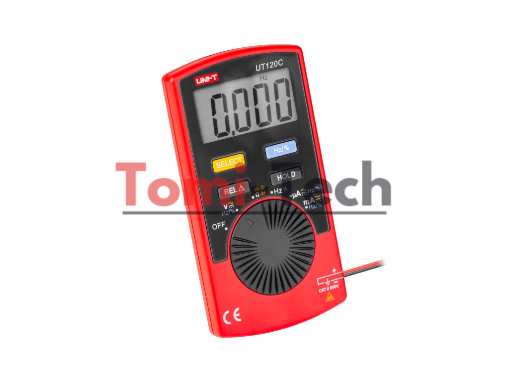 UT120C sa vyznačuje malými rozmermi (110 x 58,2 x 10,8 mm) a nízkou hmotnosťou (76 g), vďaka čomu sa pohodlne prenáša a je ideálny na prácu v teréne. Displej s rozmermi 43 x 22 mm zaisťuje ľahké čítanie a dodávané príslušenstvo, ako napríklad puzdro a batéria, zvyšuje pohodlie pri používaní a prenosnosť zariadenia.