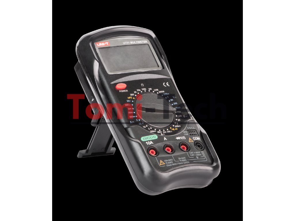 UT51 ponúka rozsiahle možnosti merania, pokrývajúce napätie aj jednosmerný prúd (DC) až do 1000 V a striedavý prúd (AC) až do 750 V. Prístroj tiež umožňuje meranie jednosmerného a striedavého prúdu, napr. test diód, meranie hFE tranzistora a testovanie kontinuity robia z UT51 všestranný diagnostický nástroj.
