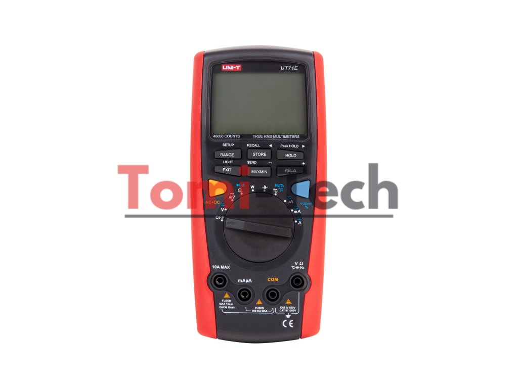 Merač UT71E ponúka množstvo pokročilých funkcií, ako napríklad True RMS, ktorá zaisťuje presné merania aj pri skreslení signálu. Zariadenie tiež umožňuje meranie hodnôt AC+DC, zaznamenávanie špičkových hodnôt a funkciu relatívneho merania, ktorá uľahčuje analýzu zmien v testovaných obvodoch. Funkcia merania činného výkonu až do 2500 W a percenta prúdu v slučke 4 – 20 mA rozširuje možnosti použitia merača v pokročilejších aplikáciách.