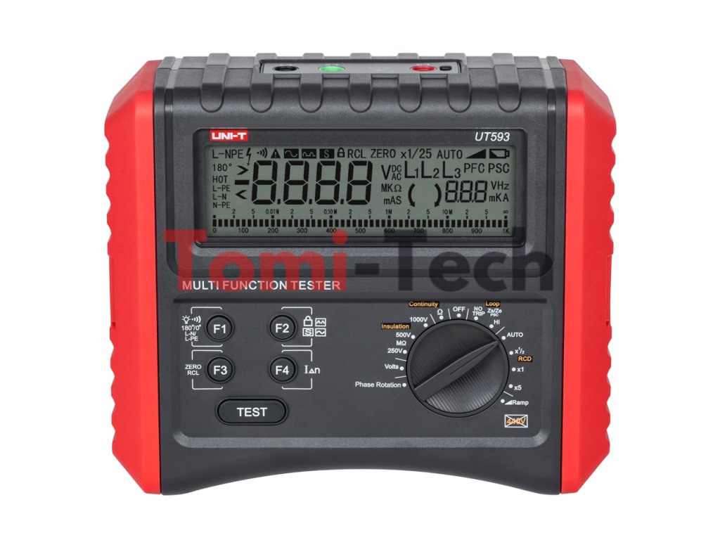 Merač UT593 ponúka možnosť merania odporu pri testovacích napätiach 250V, 500V a 1000 V s tlakom 100 % MO+5 Ωhm. S testovacím prúdom 0,9 ~ 1,1 mA a krátkym prúdom 1,8 mA bude potrebné pripraviť bezpečnú a zvukovú izoláciu, ktorá zvýši izolačnú úroveň v elektrických inštaláciách.