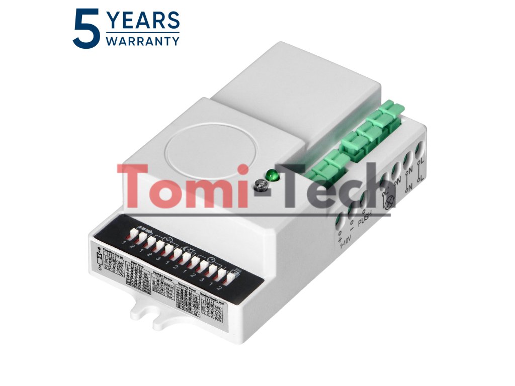 Mini mikrovlnný snímač pohybu so stmievačom, 360/180 stupňov s ovládaním jumperom, IP20, 1200 W