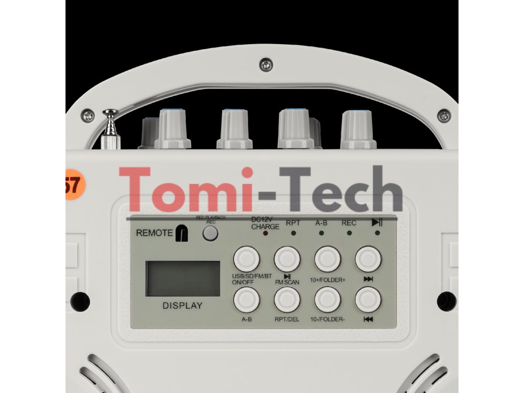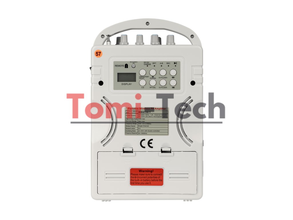 Zariadenie má 6,5 mm jack vstup pre pripojenie dynamického káblového prídavného mikrofónu a AUX vstup pre audio zdroje. Reproduktorový výstup (8 Ohm) umožňuje pripojiť externý zvukový systém.