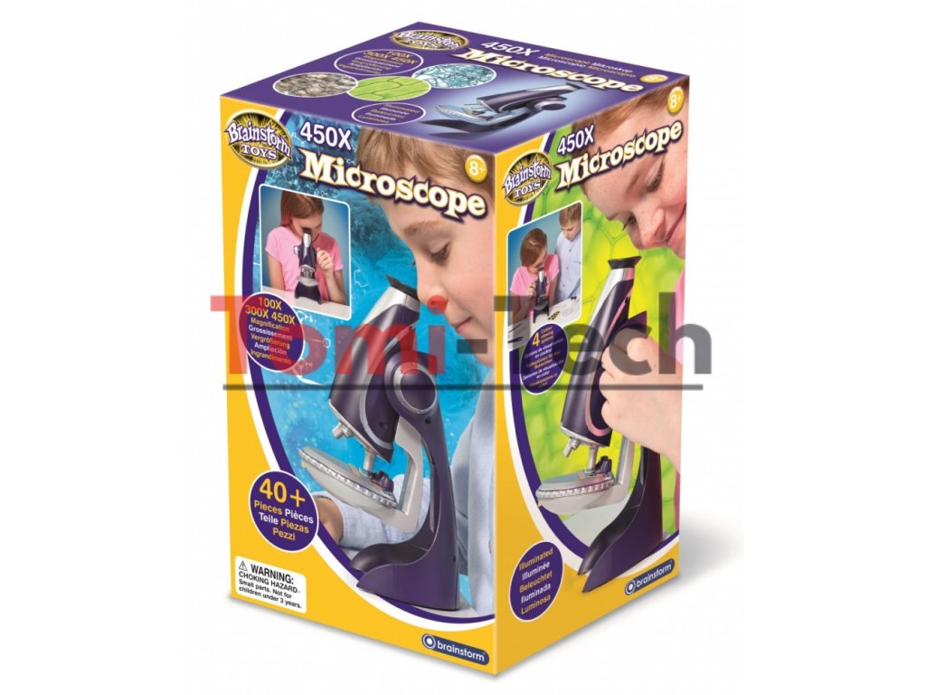 Osvetlený mikroskop so 100-násobným, 300-násobným a 450-násobným zväčšením. Pozrite sa na svet zblízka s týmto osvetleným mikroskopom. Prezrite si pripravené preparáty pri 450-násobnom zväčšení! Brožúra vysvetľuje, ako si môžete pripraviť vlastné preparáty, rovnako ako v laboratóriu. Ideálne pre mladých vedcov.