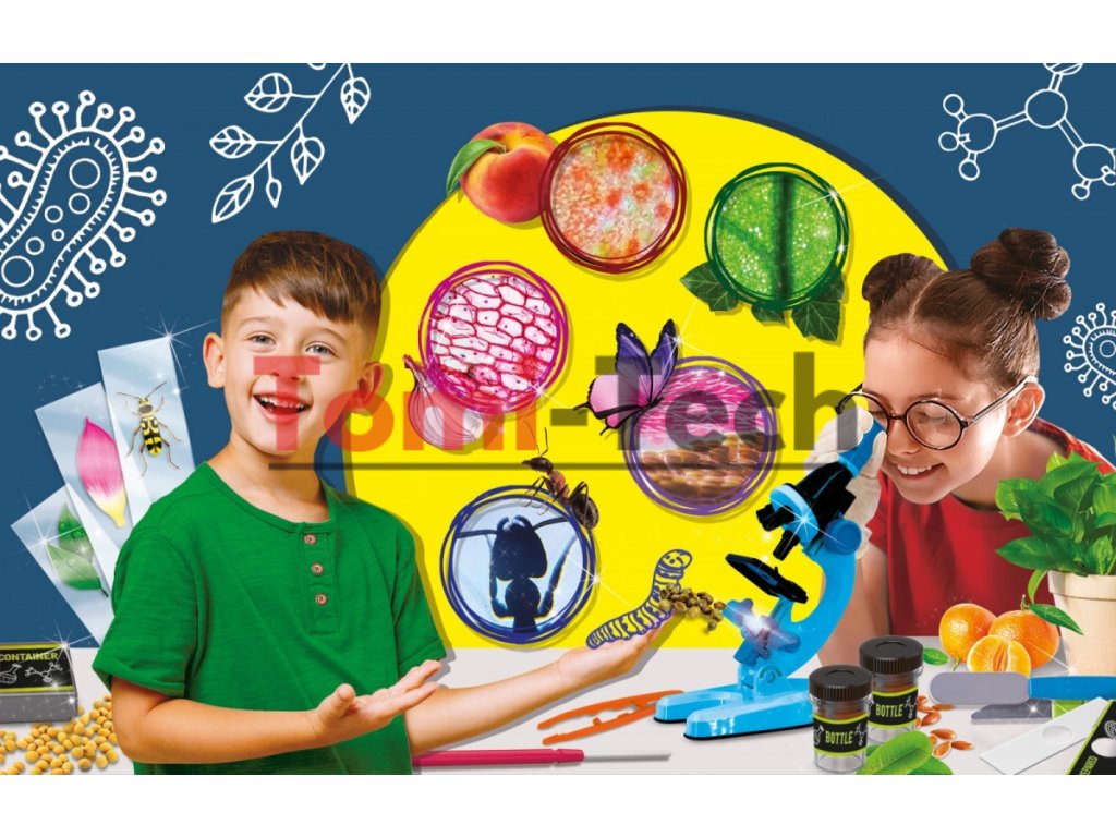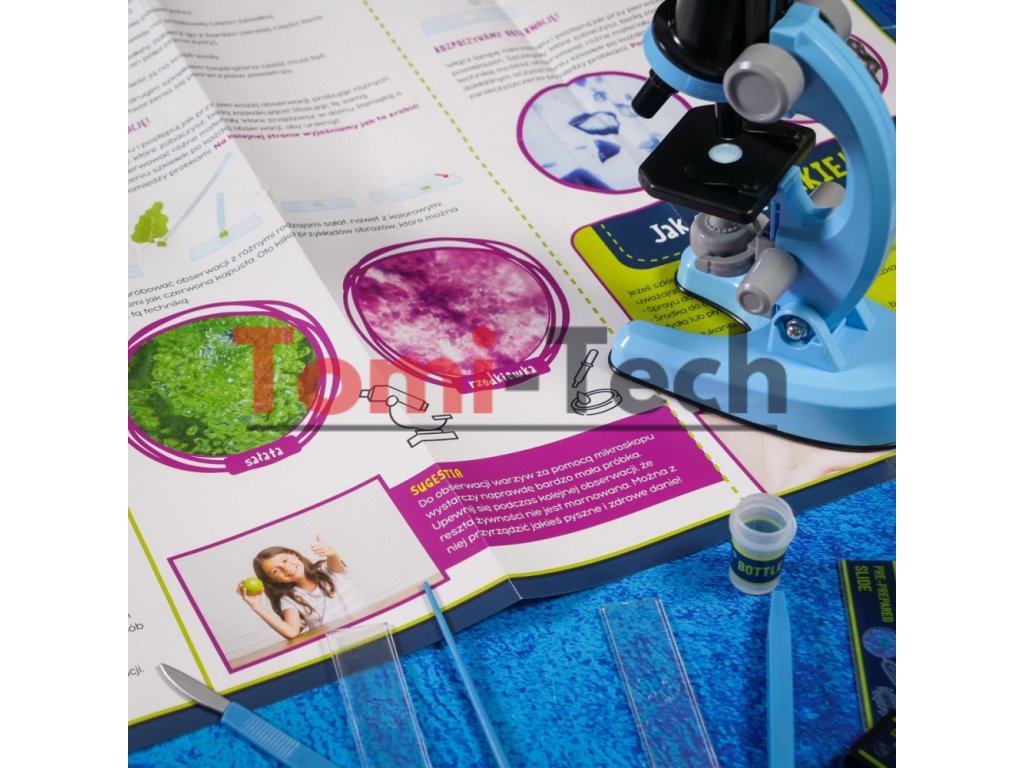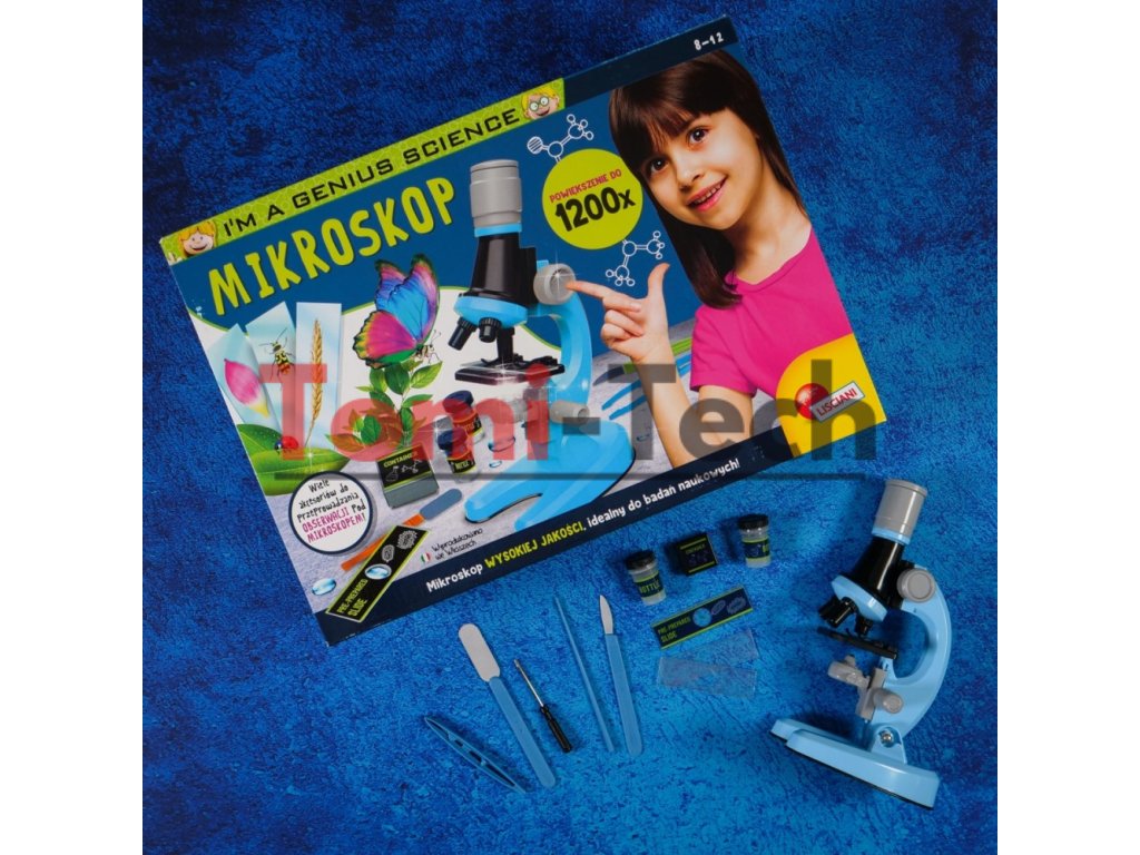 Vzdelávacia sada obsahujúca vysoko kvalitný mikroskop s 1200-násobným zväčšením. Balenie obsahuje aj pinzetu, nádoby a podložné sklíčka. Ideálny nástroj pre mladých vedcov na štúdium sveta okolo seba! Všetky možné využitia mikroskopu sú opísané v praktickej vzdelávacej príručke plnej zaujímavých faktov. SOM GÉNIUS je najobľúbenejšia séria vedeckých experimentov na poľskom trhu, ktorá už viac ako desať rokov pomáha deťom robiť prvé kroky vo svete vedy.