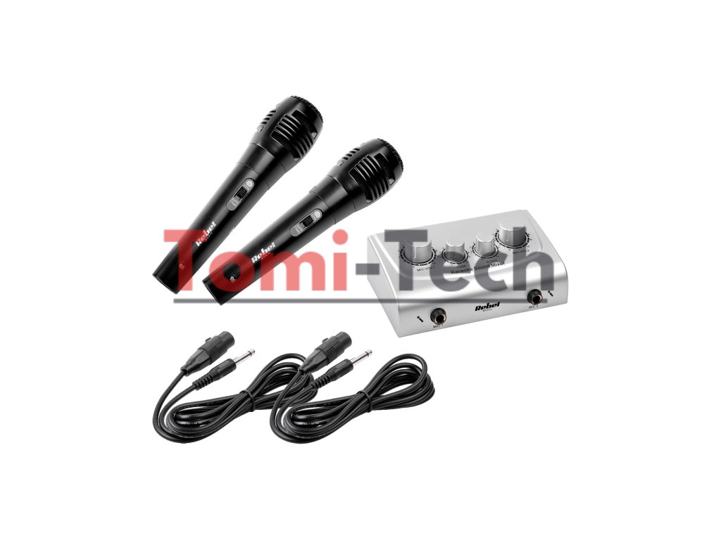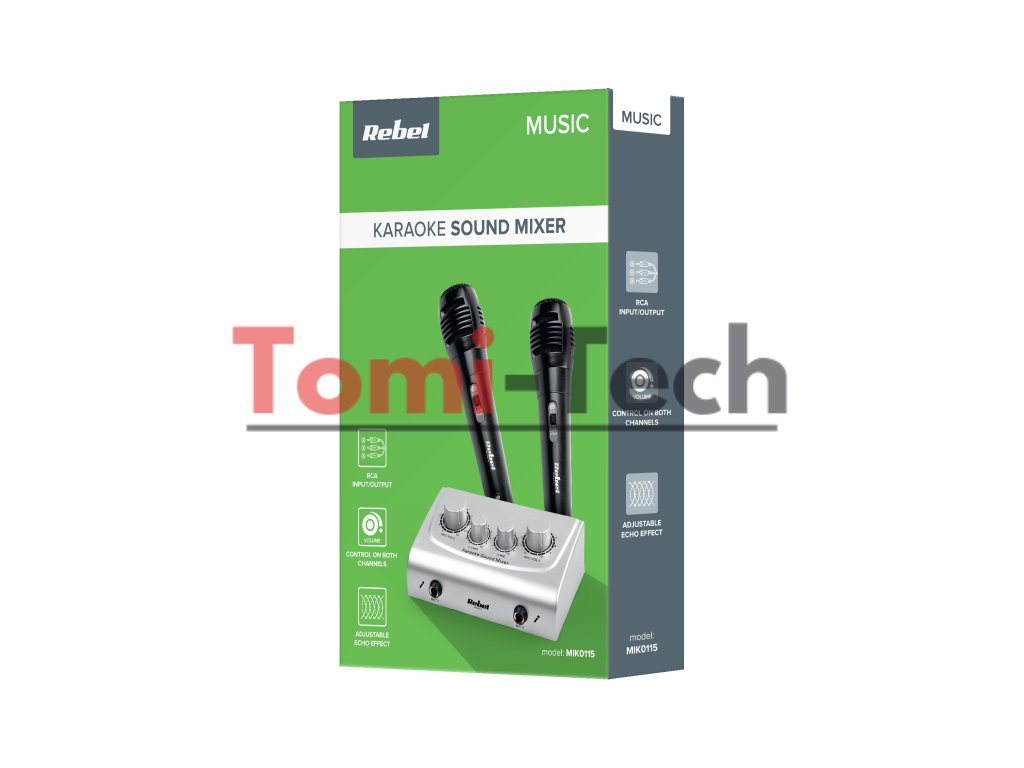 Karaoke mixážny pult sa dodáva s kompletnou súpravou, ktorá obsahuje zariadenie, napájací zdroj, dva mikrofóny a dva 2-metrové káble XLR – 6,3 mm jack. To je všetko, čo potrebujete na spustenie karaoke a vychutnanie si vynikajúcej kvality zvuku kedykoľvek.