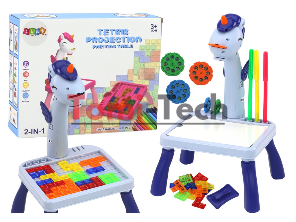 Mini projektor Tetris stôl 2v1 Jednorožec Modrý