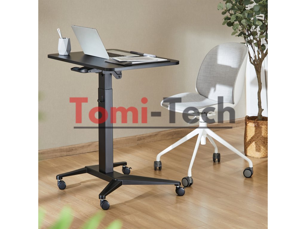 Mobilný stolík na notebook Maclean, čierny, pneumatické nastavenie výšky, 80x52cm, max. 8kg, výška 109cm, MC-453B