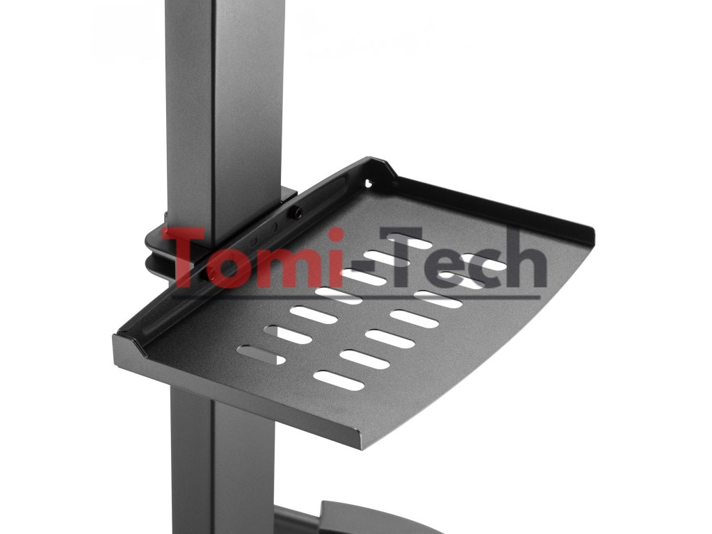 Držiak je vybavený poličkou s maximálnou nosnosťou 5 kg, ktorú je možné nastaviť na vhodnú výšku. Ideálne pre audio-video zariadenia, set-top boxy alebo hernú konzolu.