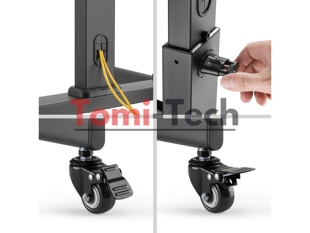 Držiak Cabletech je perfektným riešením pre každého, kto si cení pohodlie, funkčnosť a estetika. Horizontálne nastavenie od +10° do -10° umožňuje dokonalé nastavenie uhla pohľadu. Výšku držiaka je možné nastaviť od 1020 mm do 1320 mm, čo zaisťuje maximálne pohodlie pri používaní.