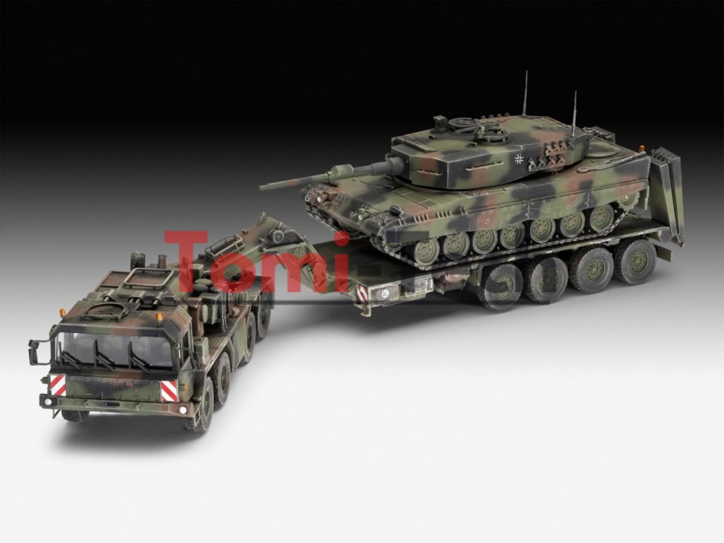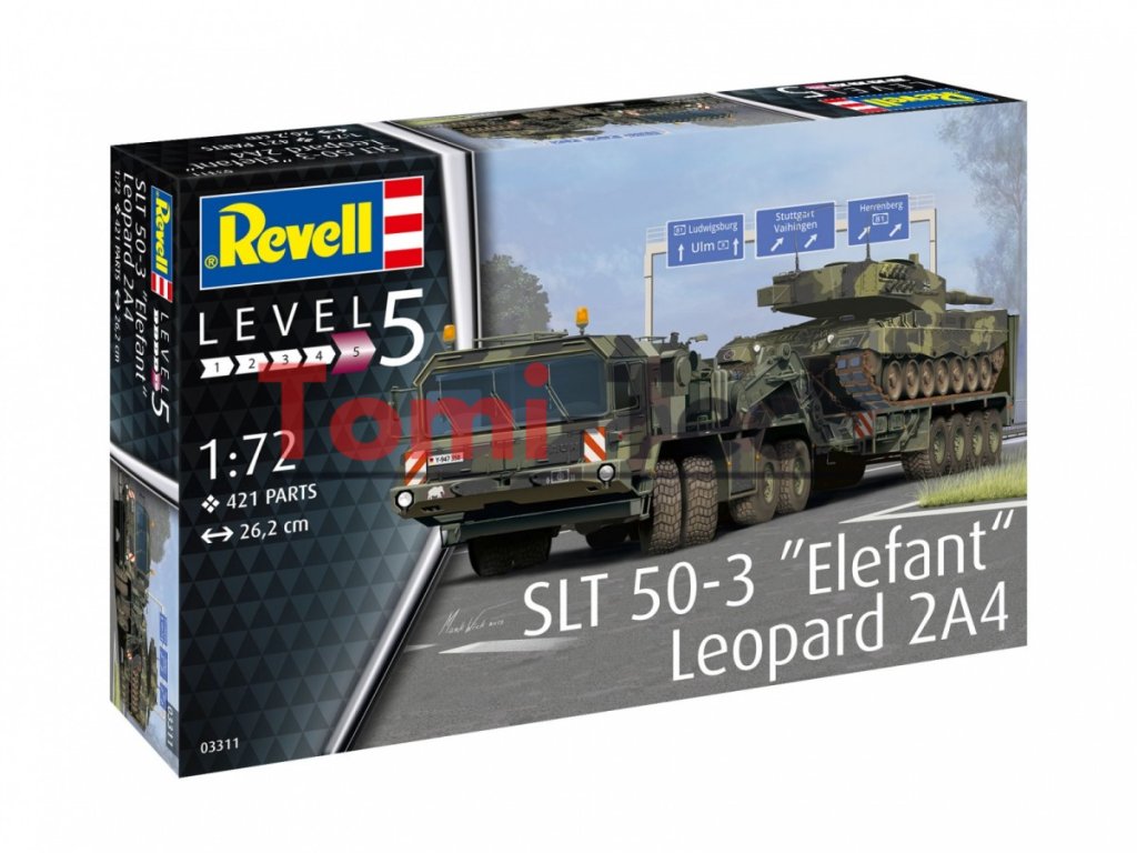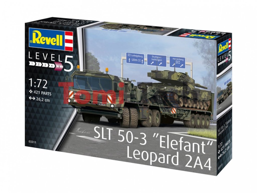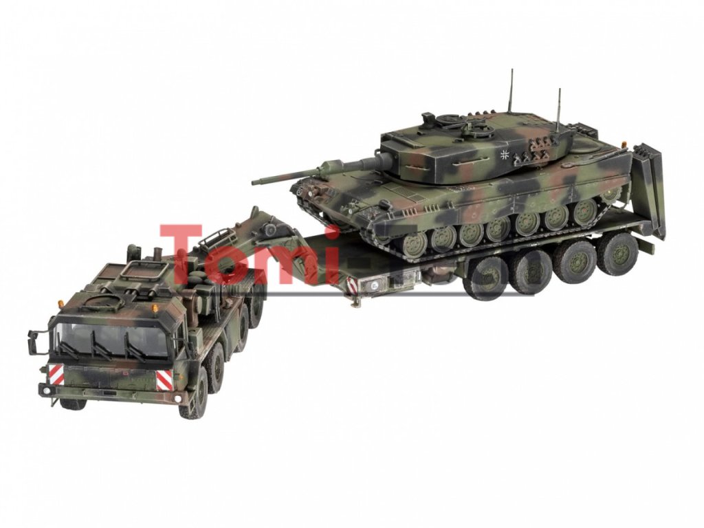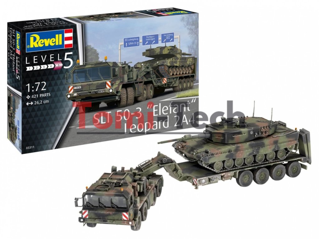 SLT 50-3 Elefant + Leopard 2A4 - ťažký ťahač, transportér tankov + nemecký hlavný bojový tank. Plastový model, farby a lepidlo nie sú súčasťou balenia.