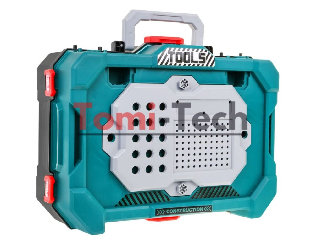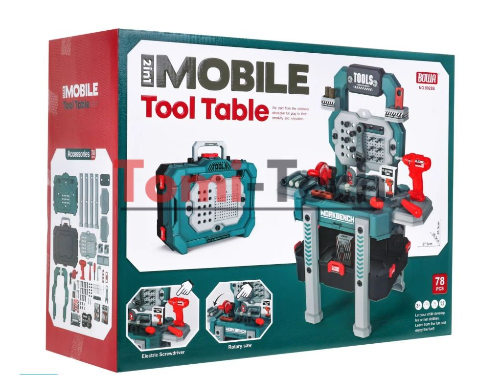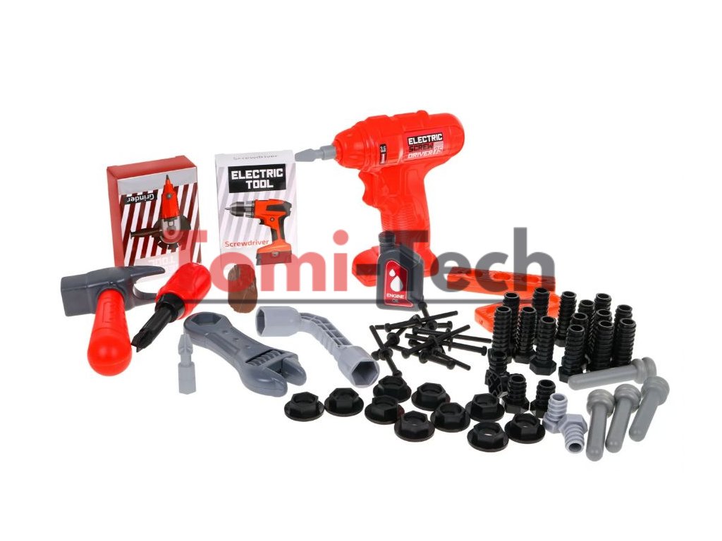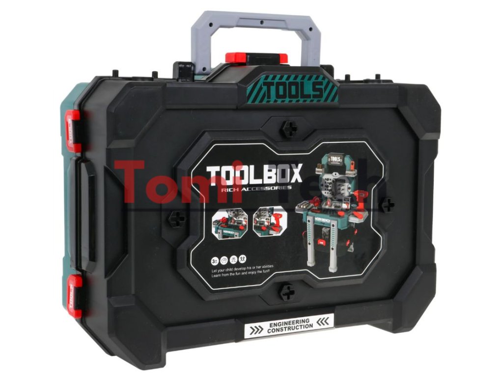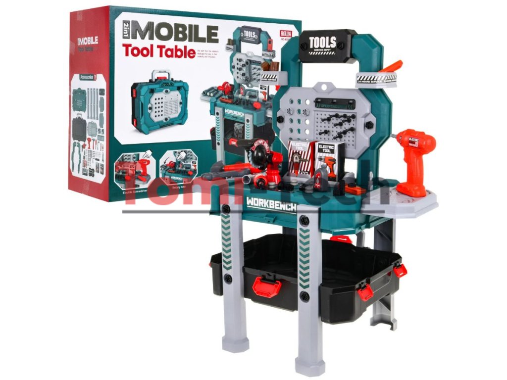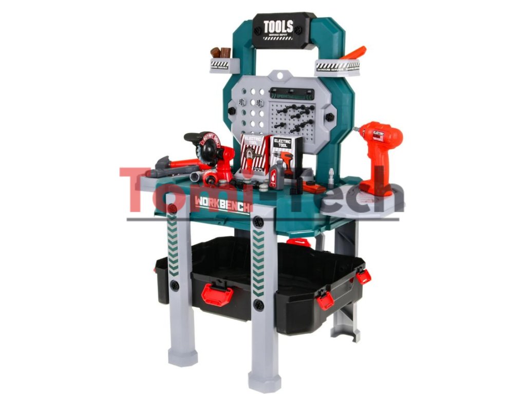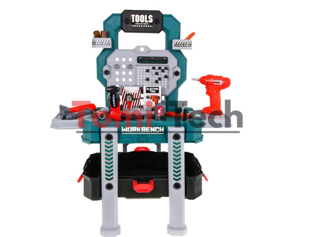 Dobre vybavená dielňa s vŕtačkou, pílkou a príslušenstvom. Súprava pozostáva zo 78 prvkov, ktoré pripomínajú skutočné náradie. Vŕtačka / skrutkovač vydáva zvuky pri skrutkovaní a má dva vymeniteľné bity. Po skončení zábavy je možné všetky prvky zavrieť do veľkého kufríka na náradie.