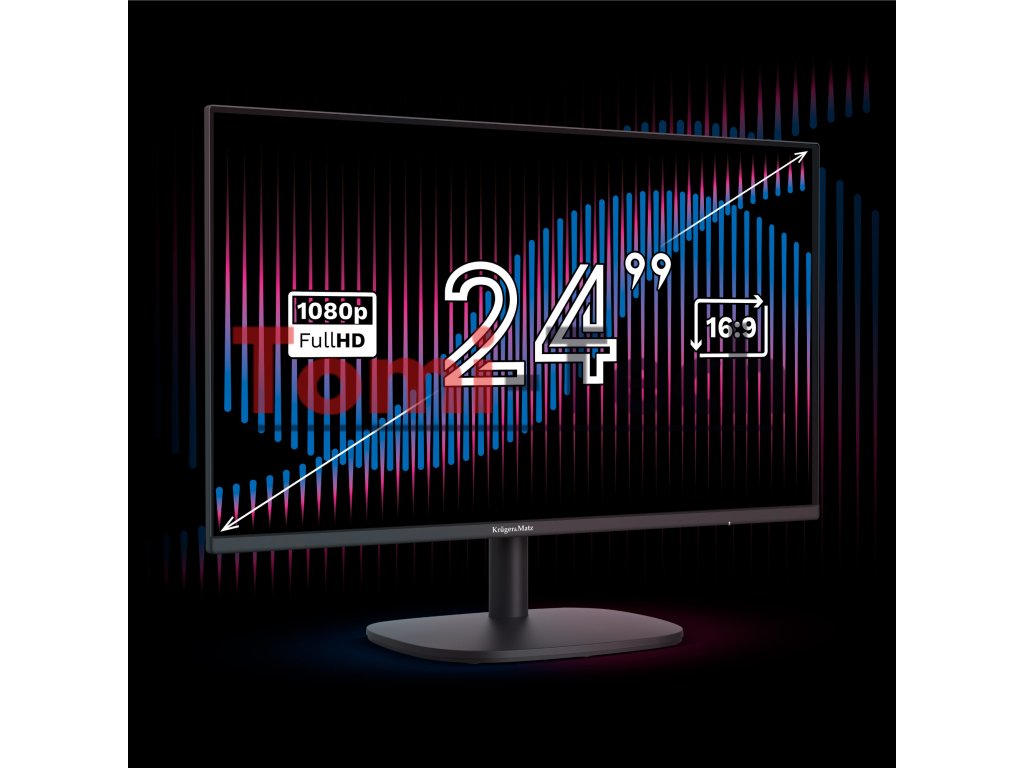 Monitor Kruger&Matz je vybavený 24-palcovou obrazovkou s rozlíšením Full HD. HD, ktoré ponúka dokonalý obraz, či už hráte hry, pozeráte film alebo pracujete. Tenké rámiky okolo obrazovky ďalej rozširujú pozorovaciu plochu, čo vám umožňuje sústrediť sa na to najdôležitejšie.