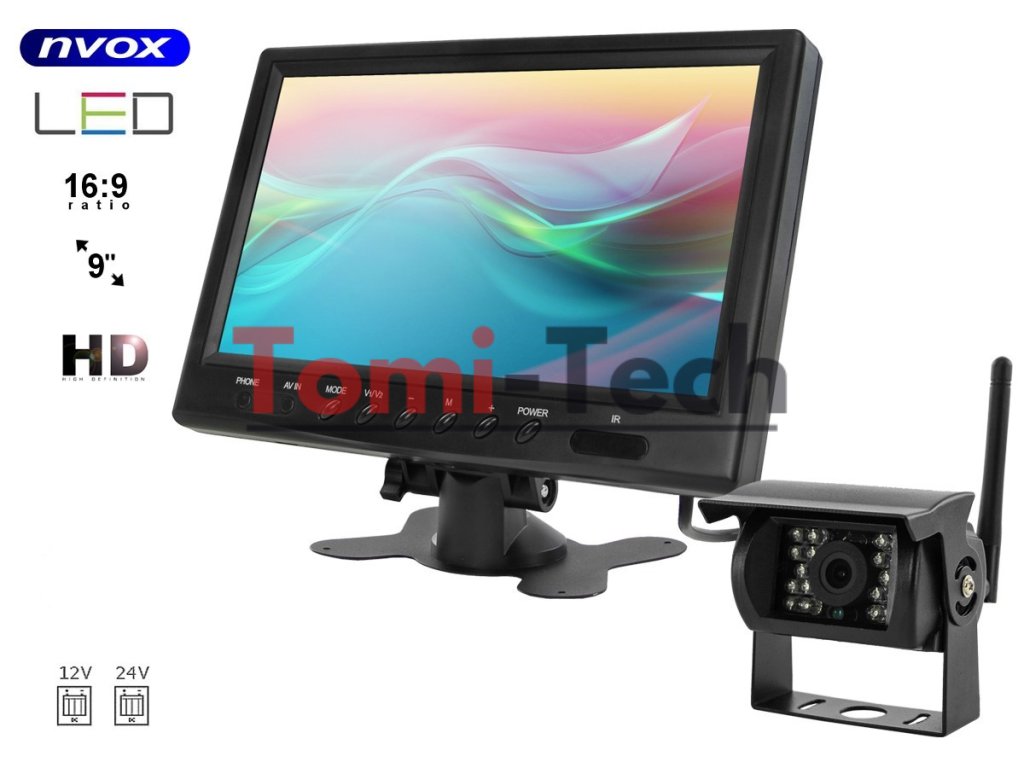 9-palcový 12/24V LCD monitor do auta a kamera s nočným videním