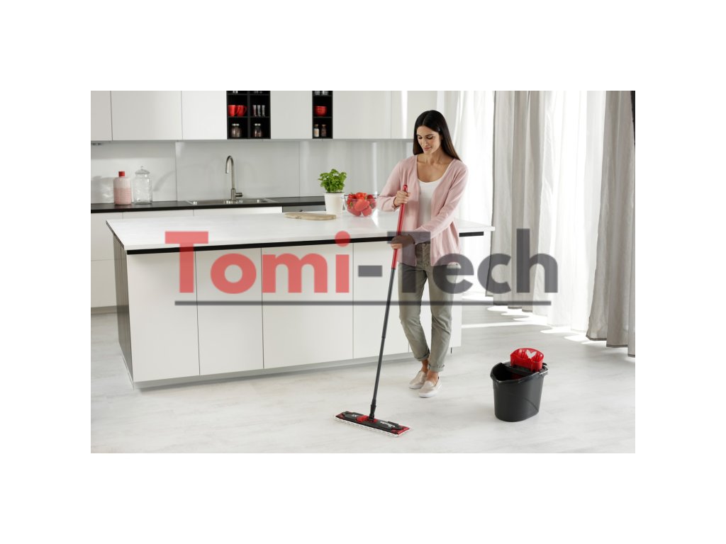 Vystužený a vylepšený držiak na mop umožňuje súčasné žmýkanie mopu ručne aj vo vedre. Vedro je vybavené špeciálnym žmýkačom*.