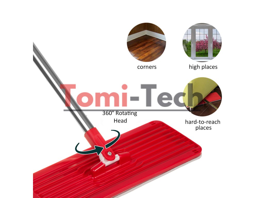 Plochá hlavica mopu vám umožní dosiahnuť aj do tých najneprístupnejších kútov. Nastaviteľná hlavica ľahko umožní dôkladné čistenie pod nábytkom, pohovkami alebo kreslami.
