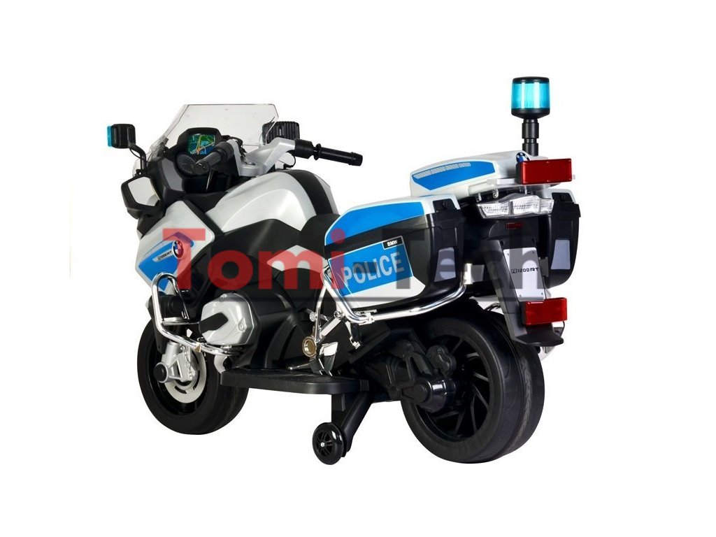 Policajná motorka BMW R1200 púta pozornosť už z diaľky. Jeho dizajn zahŕňa biele a modré LED svetlá umiestnené vpredu a na riadidlách, ako aj v zadnej časti vozidla a v podobe policajného majáku – veríme, že ich zapnutím sa každý malý vodič bude cítiť ako skutočný policajt a jeho bezpečnosť a viditeľnosť na ceste sa zvýši na maximum. Ďalšou výhodou, ktorá je veľkou pomocou najmä pre najmenších vodičov, je kombinácia konštrukcie motorky s bočnými kolesami, ktoré uľahčujú udržiavanie rovnováhy počas jazdy.