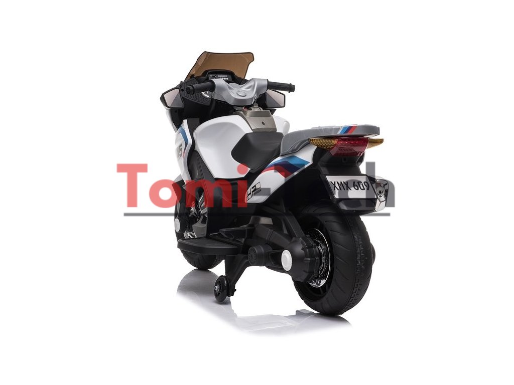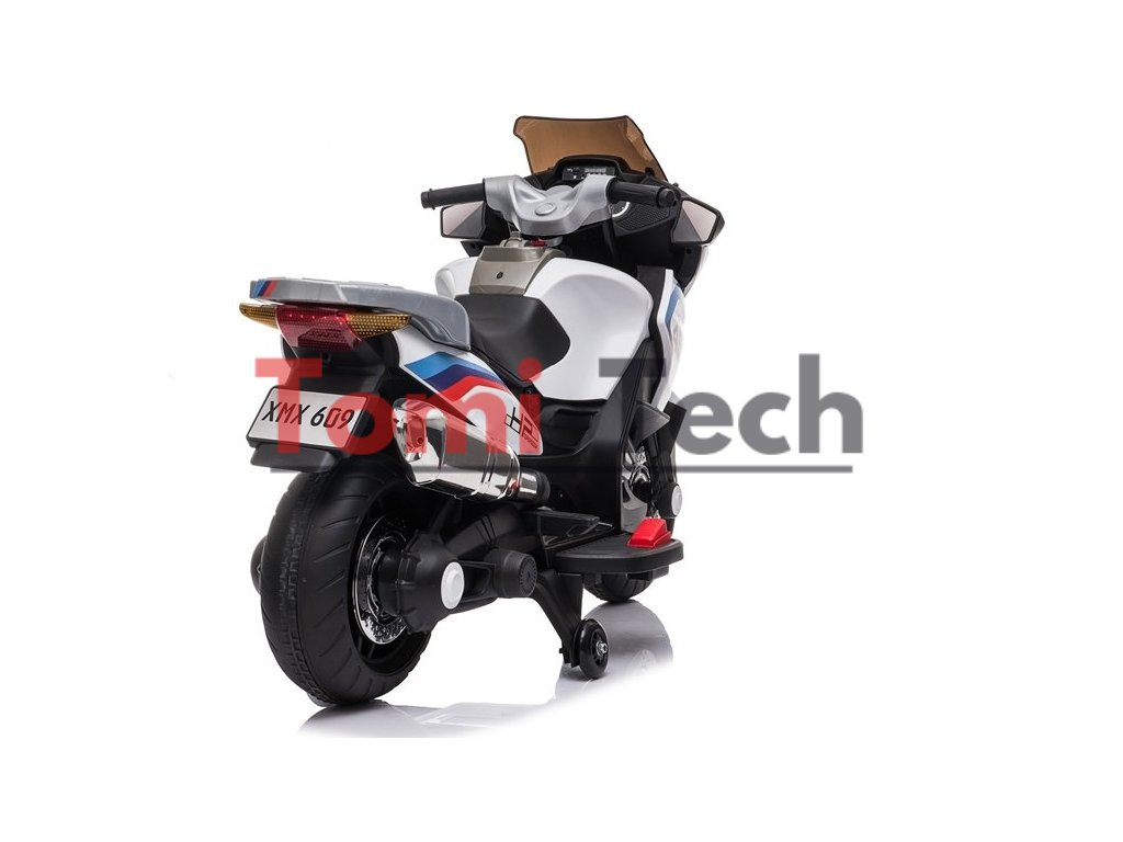 Motor XMX609 je vybavený 12V7Ah gélovou batériou a dvoma STRONG motormi s výkonom 45 W. Duo týchto komponentovumožňuje dosiahnuť rýchlosť okolo3-7 km/h, čo každému dieťaťu prinesie skvelú zábavu. Navyše: tento model má dva prevody - dopredu a dozadu, čo výrazne uľahčuje hru. Dizajn detského batériovomotora je veľmi dobre premyslený - je umiestnený na mäkkých EVA kolieskach, ktoré zaisťujú pohodlie počas jazdy. Toto riešenie vám umožňuje jazdiť na rôznych typoch spevnených povrchov bez vydávania hluku. Detská motorka XMX609 na batériový pohon bola navrhnutá s ohľadom na všetky deti staršie ako 3 roky. Miniaturizovaná verzia motora je vyrobená z certifikovaných, vysoko kvalitných materiálov, ktoré zaručujú pevnosť a odolnosť, čo je ešte zdôraznené certifikátom CE. Batériové vozidlo pre batoľatá je zabalené v originálnej krabici, ktorá obsahuje návod na jednoduchú svojpomocnú montáž všetkých konštrukčných prvkov, ako aj batériu a nabíjačku.