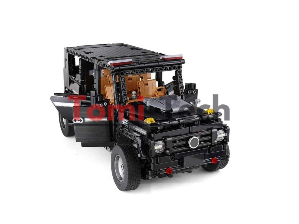 Sada 1722 stavebných kociek na svojpomocnú stavbu čierneho terénneho auta. Model je vyrobený v mierke 1:10. Hračka je určená pre deti od 14 rokov. Kocky a prvky auta sú vyrobené z kvalitného plastu a materiálu z uhlíkových vlákien.Auto má pohyblivé prvky, ako sú otváracie bočné a zadné dvere a sklopné sedadlá. Auto má navyše otočný volant a kolesá. Sada obsahuje obrázkový návod. Skladanie stavebných kociek rozvíja u detí manuálne zručnosti, priestorovú predstavivosť a trpezlivosť.