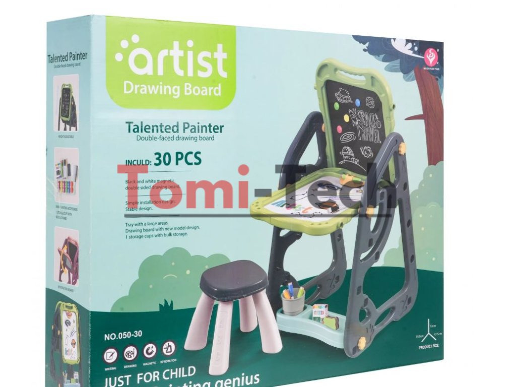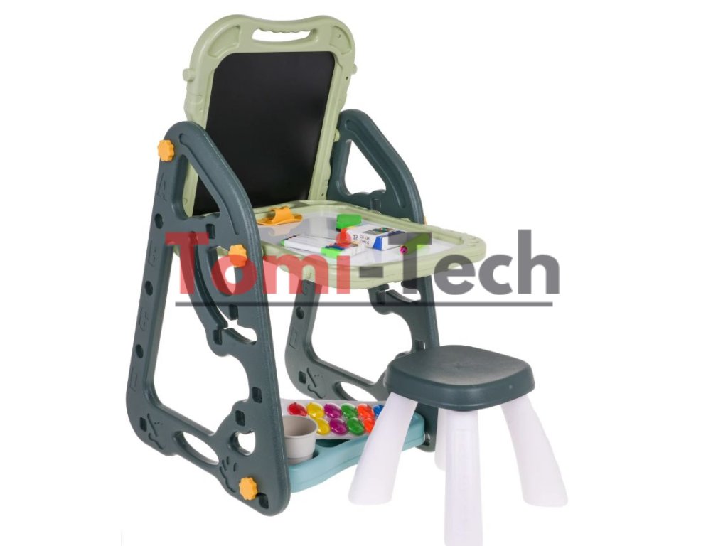 Táto veľká multifunkčná súprava je ideálna pre deti od 3 rokov. Ponúka dve tabule: magnetickú a kriedovú, spolu s pohodlným kreslom. Môžete si nastaviť rám tabule na dva spôsoby: