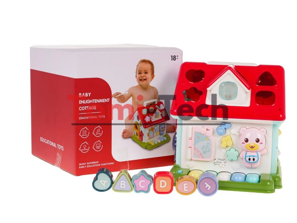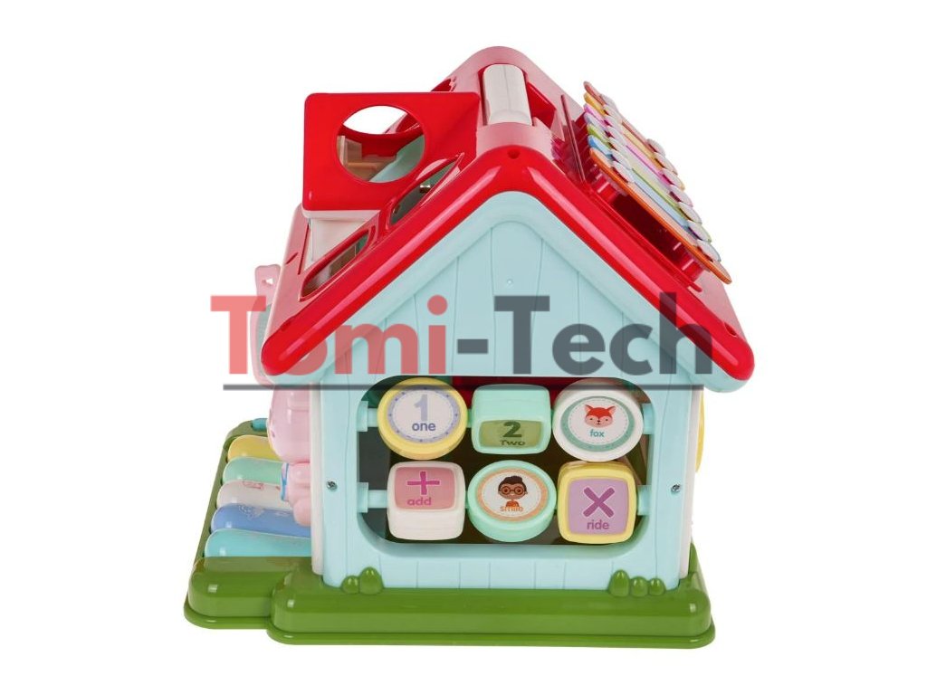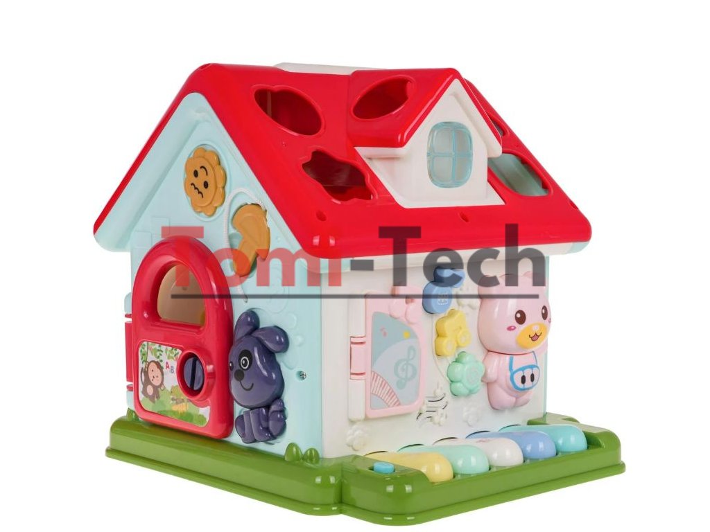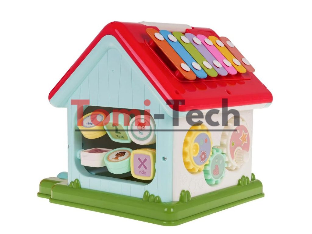 Interaktívny, vzdelávací domček pre deti od 18 mesiacov. Domček je vyrobený z najkvalitnejšieho plastu v živých farbách, ktoré priťahujú pozornosť dieťaťa a podporujú vzdelávaciu hru. Domček stojí na zelenej tráve, má 4 steny ponúkajúce rôzne atrakcie, červenú striešku a rukoväť na prenášanie. Hračka je napájaná batériami typu 3 x AA 1,5 V (nie sú súčasťou balenia). Interaktívny, vzdelávací domček pre deti od 18 mesiacov. Domček je vyrobený z najkvalitnejšieho plastu v živých farbách, ktoré priťahujú pozornosť dieťaťa a podporujú vzdelávaciu hru. Domček stojí na zelenej tráve, má 4 steny ponúkajúce rôzne atrakcie, červenú striešku a rukoväť na prenášanie. Hračka je napájaná batériami typu 3 x AA 1,5 V (nie sú súčasťou balenia).