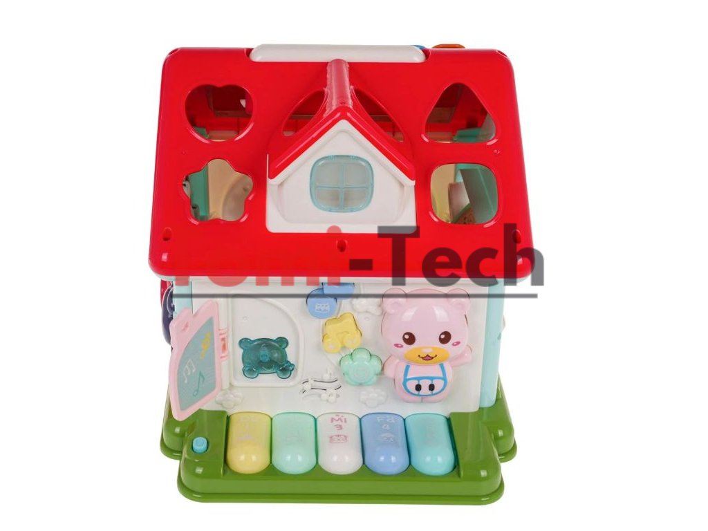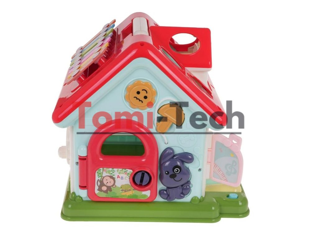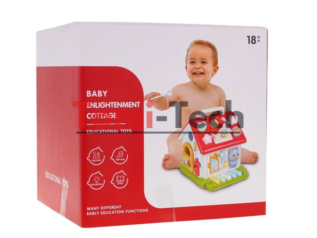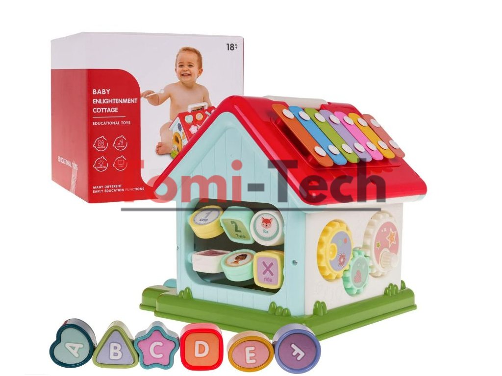 Interaktívny, vzdelávací domček pre deti od 18 mesiacov. Domček je vyrobený z najkvalitnejšieho plastu v živých farbách, ktoré priťahujú pozornosť dieťaťa a podporujú vzdelávaciu hru. Domček stojí na zelenej tráve, má 4 steny ponúkajúce rôzne atrakcie, červenú striešku a rukoväť na prenášanie. Hračka je napájaná batériami typu 3 x AA 1,5 V (nie sú súčasťou balenia). Interaktívny, vzdelávací domček pre deti od 18 mesiacov. Domček je vyrobený z najkvalitnejšieho plastu v živých farbách, ktoré priťahujú pozornosť dieťaťa a podporujú vzdelávaciu hru. Domček stojí na zelenej tráve, má 4 steny ponúkajúce rôzne atrakcie, červenú striešku a rukoväť na prenášanie. Hračka je napájaná batériami typu 3 x AA 1,5 V (nie sú súčasťou balenia).