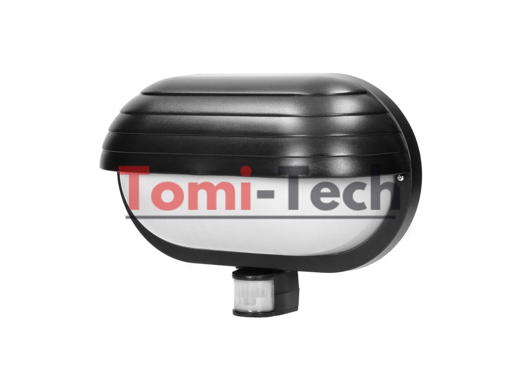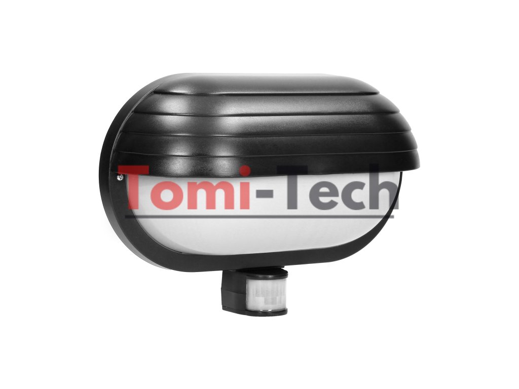 Toto svietidlo je určené na automatické osvetlenie vonkajších priestorov a miestností, ako sú schodiská, chodby, pivnice, garáže, sklady atď. Je vybavené pasívnym infračerveným senzorom, ktorý reaguje na pohyb. Uhol detekcie: 180°, s potenciometrami na nastavenie doby svietenia a citlivosti intenzity svetla. Farba: čierna. Materiál: plast.Dodatočné parametre