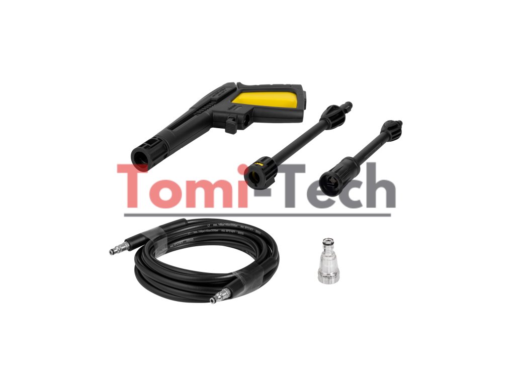 >Čistič sa dodáva s pištoľou, 2 tryskami, hadicou a vstupným adaptérom s filtrom. Kryt zariadenia má praktické rukoväte, na ktoré môžete ľahko navinúť hadicu a napájací kábel. Vďaka špeciálne navrhnutému priestoru bude skladovanie nadstavca jednoduchšie.