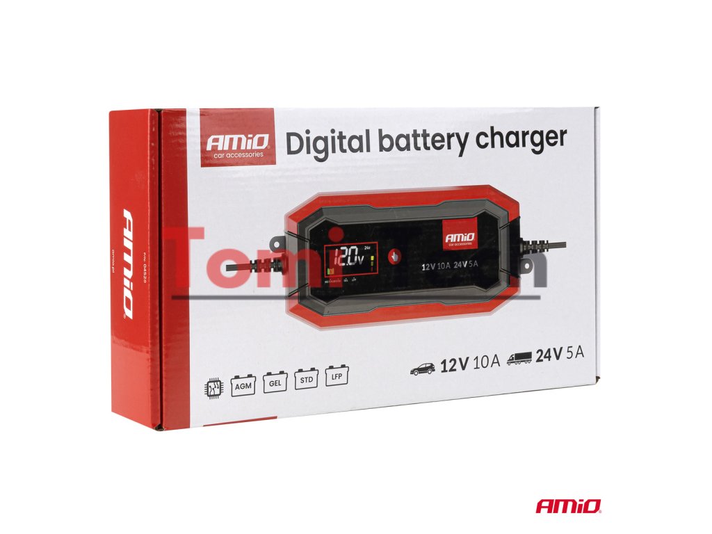 Digitálna nabíjačka AMiO PRO 12/24V je spoľahlivé a všestranné zariadenie, ktoré zaisťuje rýchle, bezpečné a profesionálne nabíjanie batérií, predlžuje ich životnosť a zabezpečuje pripravenosť vozidiel a zariadení v každej situácii.