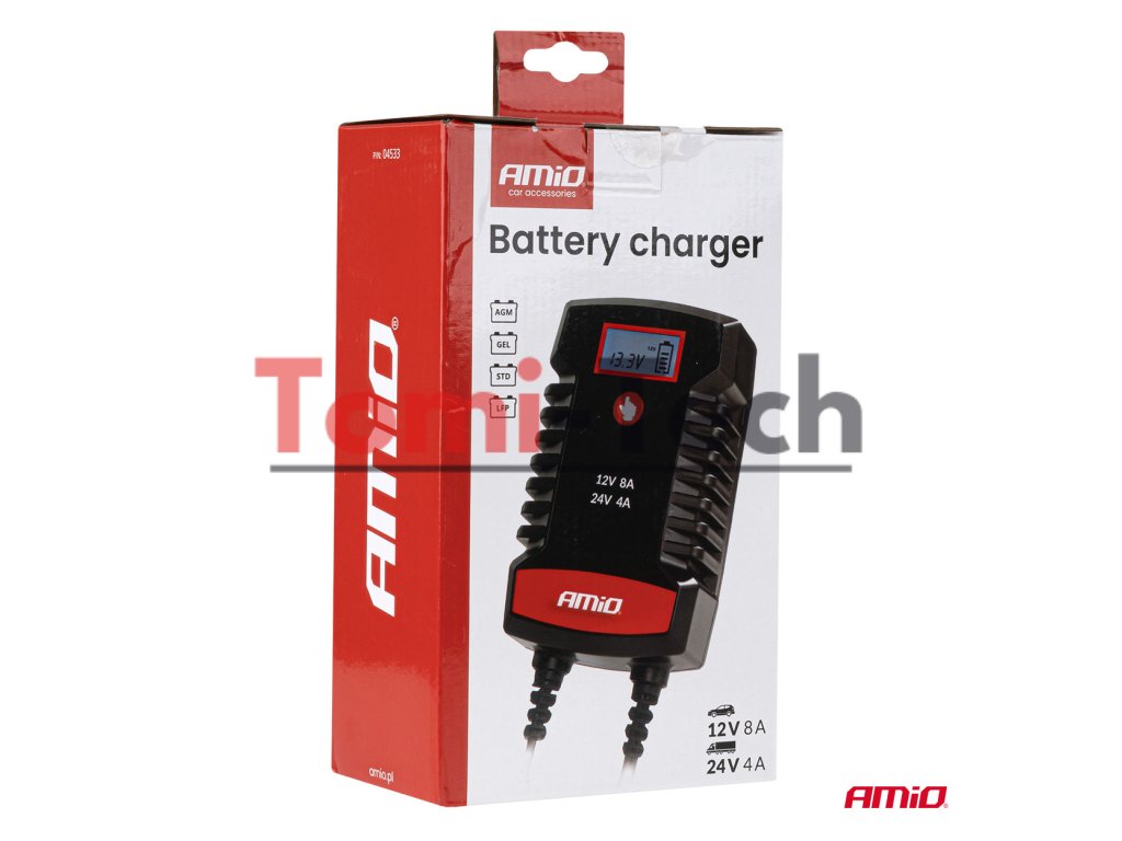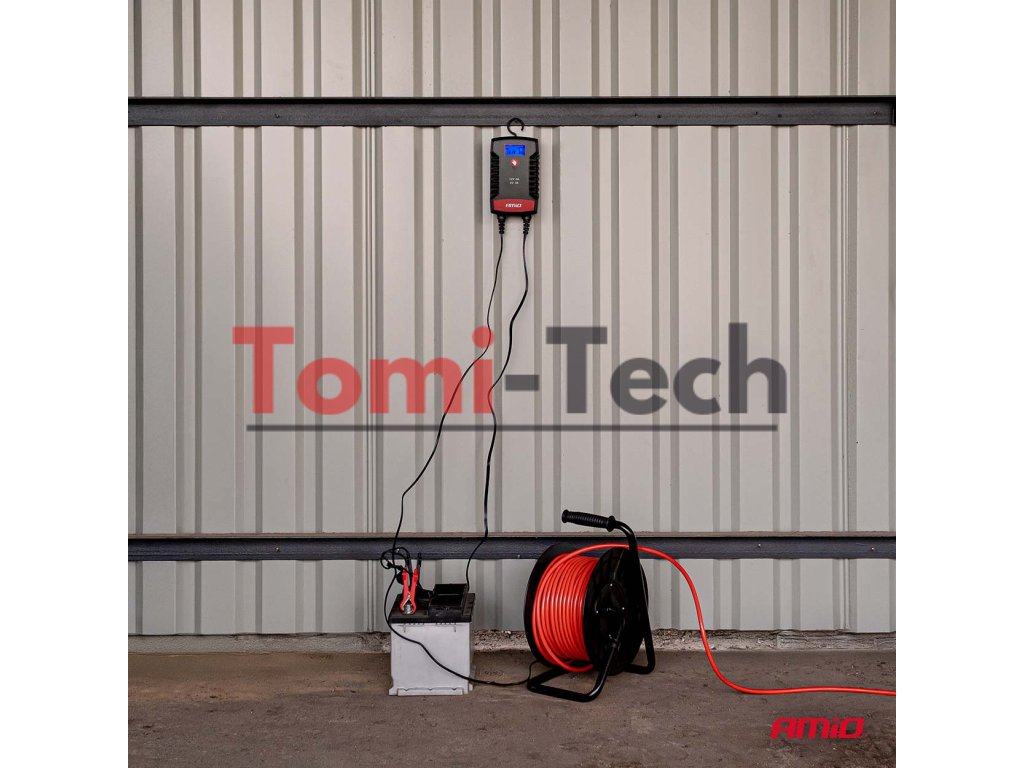 Digitálna nabíjačka AMiO PRO HOOK je profesionálne zariadenie na nabíjanie batérií AGM, GEL a LiFePo4 (LFP) . S maximálnym nabíjacím prúdom 8 A a podporou napätí 12 V a 24 V zaisťuje rýchle, bezpečné a presné nabíjanie batérií v osobných automobiloch, nákladných automobiloch, motocykloch a profesionálnych zariadeniach. Nabíjačka je vybavená funkciou udržiavania napätia so zabudovaným hákom na zavesenie pod kapotu. Obsahuje rýchlospojku a ďalšie očká na konektory. Je ideálna na nabíjanie batérií v benzínových a naftových osobných automobiloch a nákladných automobiloch a má tiež špeciálnu funkciu nabíjania batérií LFP.