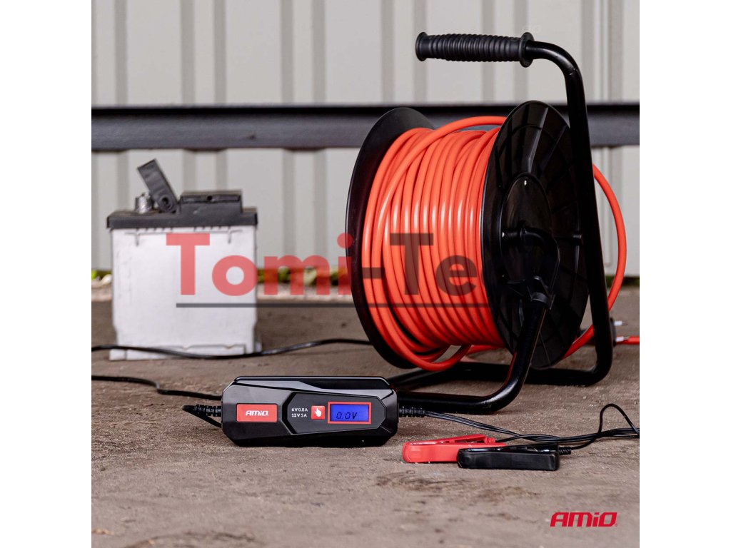 Digitálna nabíjačka AMiO je spoľahlivé a ľahko použiteľné zariadenie, ideálne na nabíjanie batérií v autách, motocykloch, lodiach alebo skladových zariadeniach, ktoré zaisťuje dlhú životnosť batérie a plnú kontrolu nad procesom nabíjania.