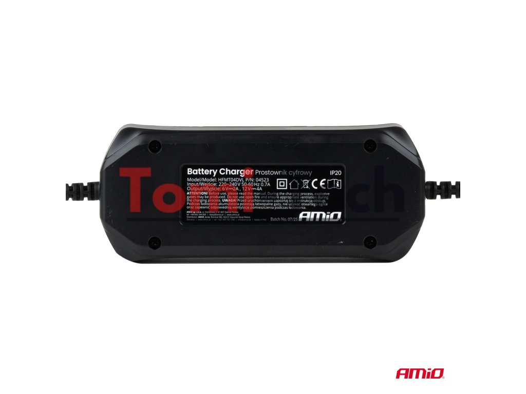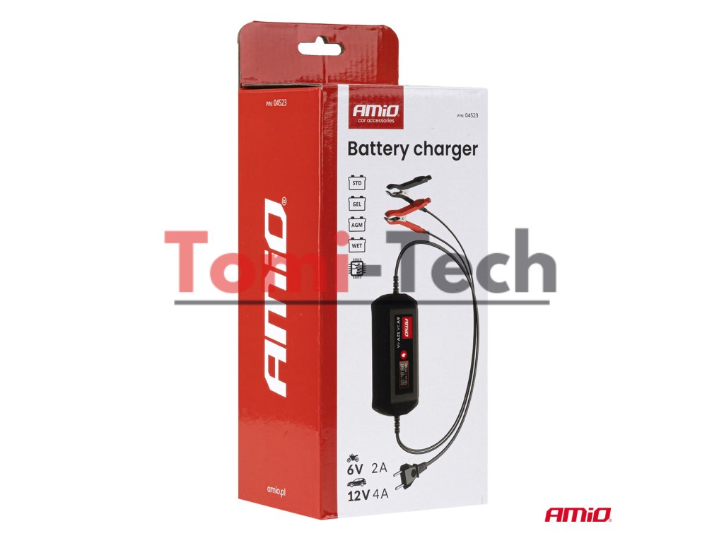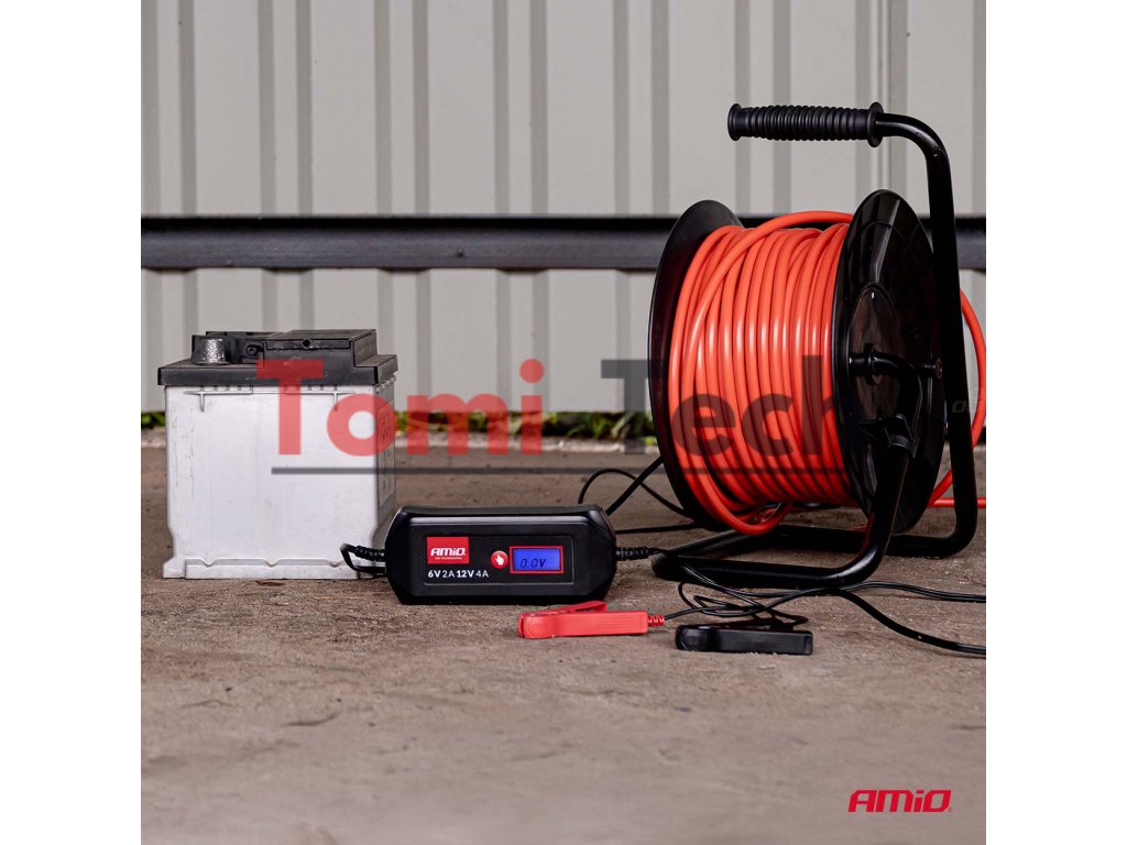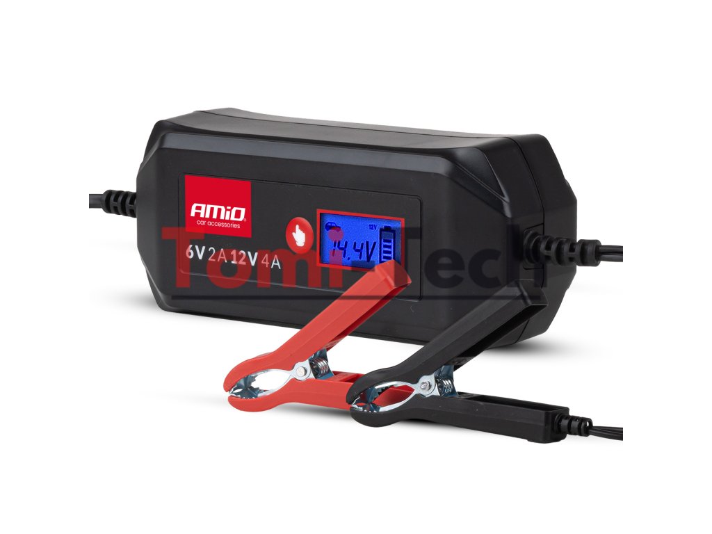 Digitálna nabíjačka AMiO je efektívne a bezpečné zariadenie určené na nabíjanie olovených akumulátorov: WET, AGM a GEL . Ideálna na použitie doma, v dielni alebo pre malé vozidlá, poskytuje presné a stabilné nabíjanie 6V alebo 12V batérií . Základná nabíjačka s udržiavaním napätia a automatickou regeneráciou sulfátovaných batérií. Optimálna na nabíjanie batérií motocyklov a benzínových osobných automobilov.