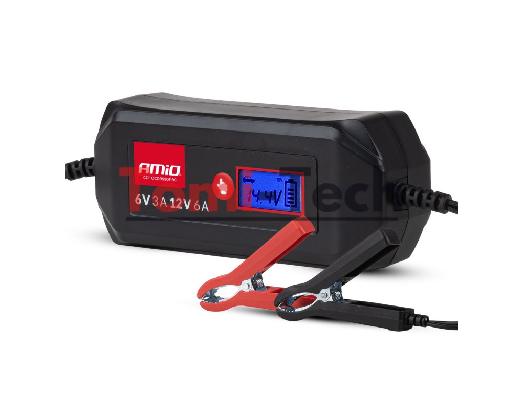 Digitálna nabíjačka AMiO je moderné zariadenie na nabíjanie olovených akumulátorov: WET, AGM a GEL . Vďaka stabilnému a presnému nabíjaniu s maximálnym prúdom 6 A poskytuje rýchle, bezpečné a efektívne nabíjanie 6V alebo 12V batérií. Táto základná nabíjačka je vybavená funkciou udržiavania napätia a automatickou regeneráciou sulfátovaných batérií. Ideálna na nabíjanie motocyklových batérií a osobných automobilov s benzínovými a naftovými motormi s malým objemom.