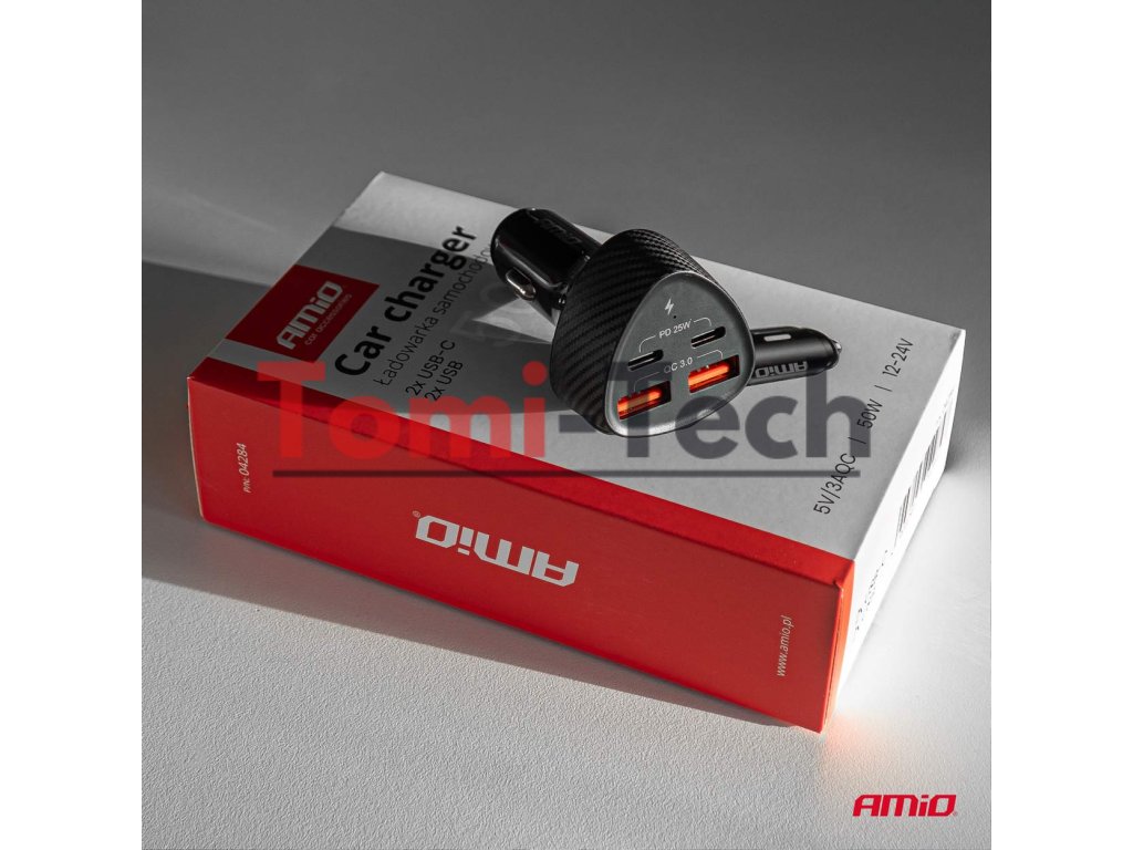 Nabíjačka do auta 50W 2xUSB-A + 2xUSB-C