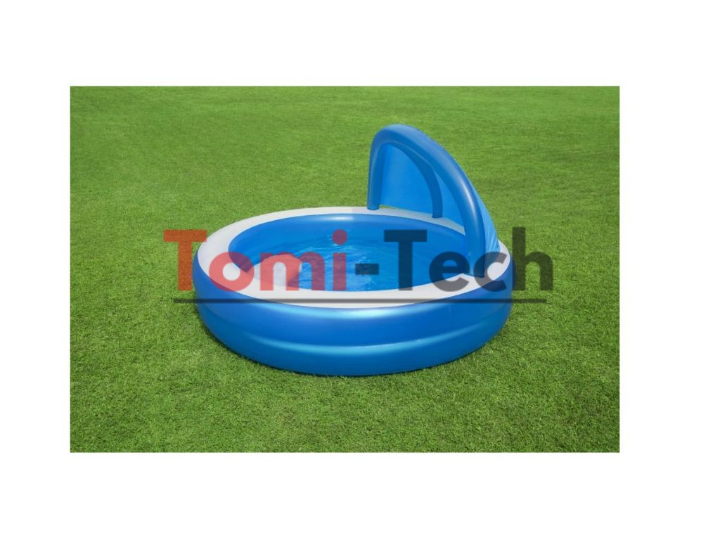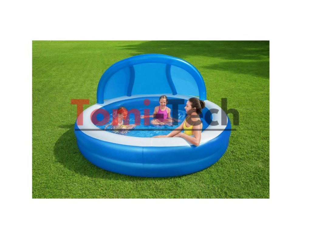 Veľký spoľahlivý bazén pre celú rodinu. Bazén je ľahký, takže ho možno jednoducho premiestniť. Má dva nafukovacie kruhy a je ako stvorený na letný relax. Je ideálny pre deti od 3 rokov. Ľahko sa nafukuje a vyfukuje, takže skladovanie nebude problém. Strieška pripevnená k bazénu účinne ochráni Vás a Vašich blízkych pred slnečnými lúčmi. Nafukovacia sedačka vo vnútri bazéna Vám poskytne pohodlný odpočinok.